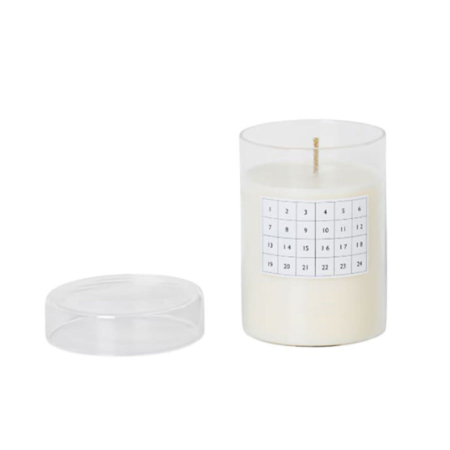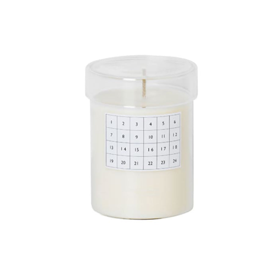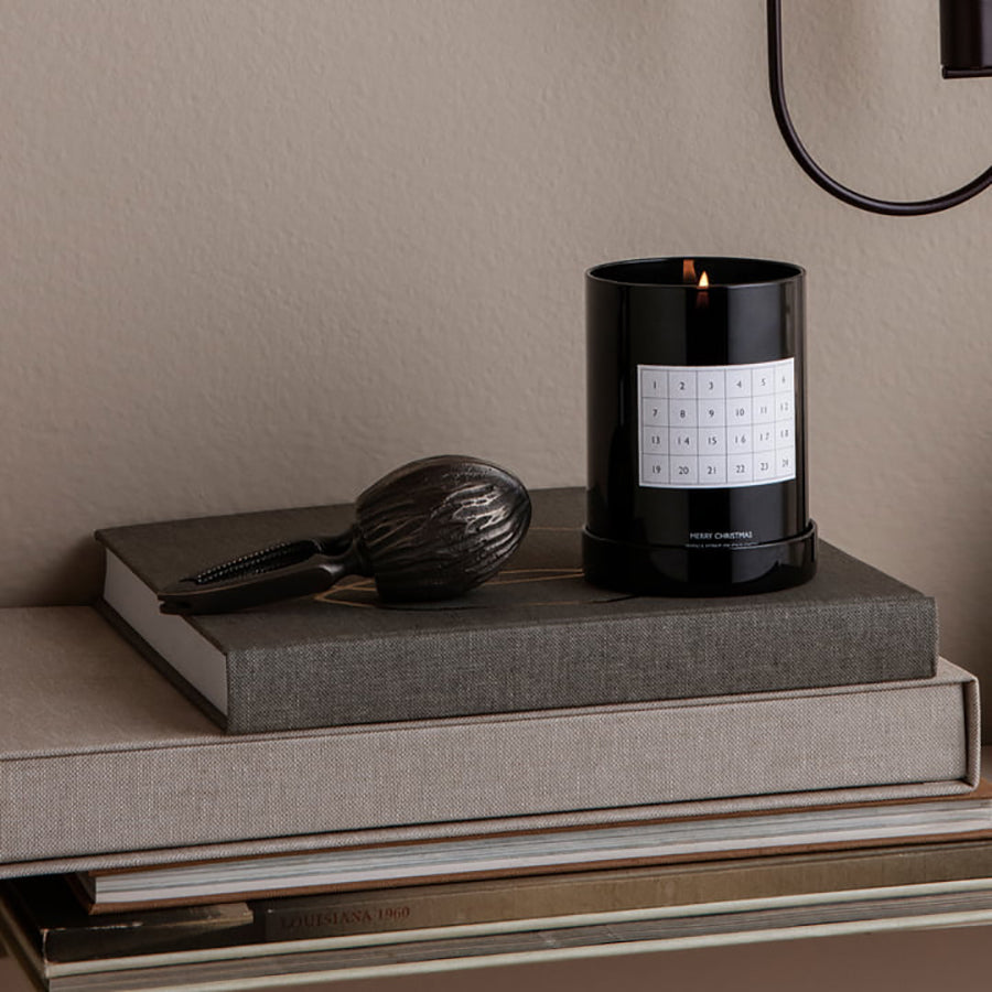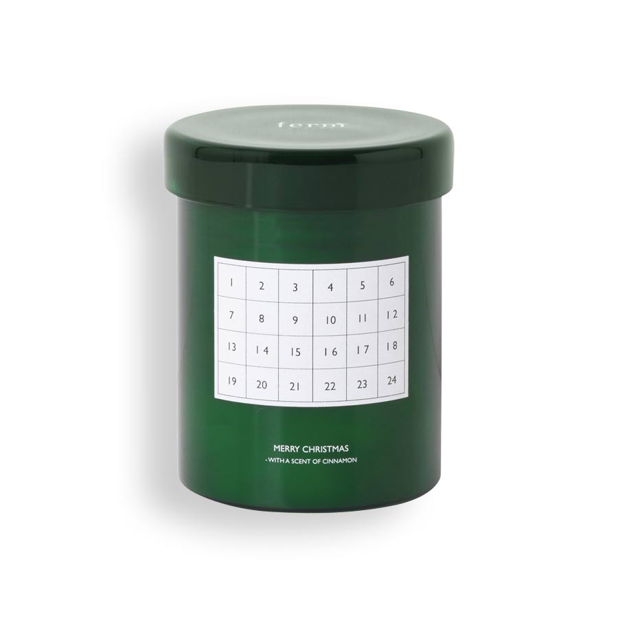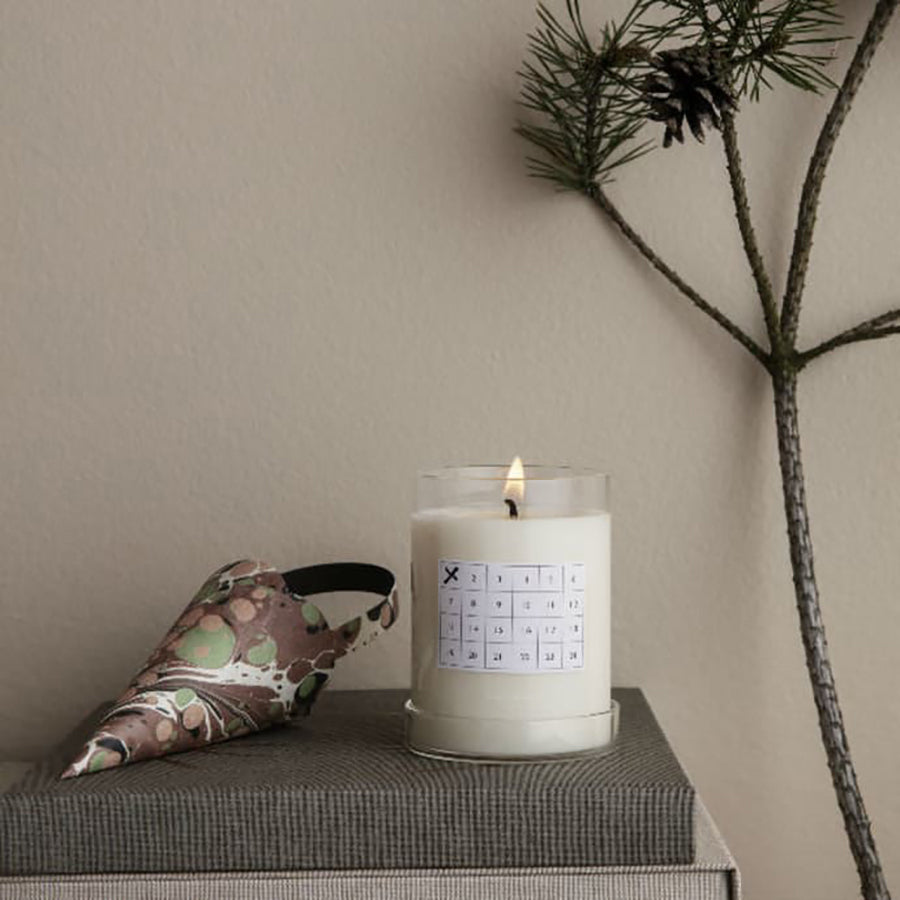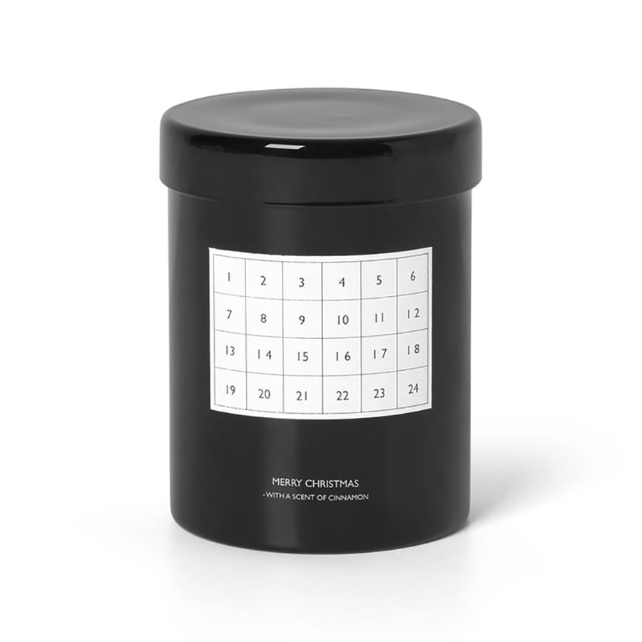 Mettez-vous dans l'ambiance de Noël avec cette jolie bougie parfumée de chez Ferm Living. Son petit calendrier de l'avent affiché sur le devant de la bougie et son délicieux parfum à la cannelle nous permet de retrouver l'esprit des vacances de Noël. Le contenant en verre peut être réutilisé comme petit bocal à coton par exemple. Retrouvez notre sélection de bougies.