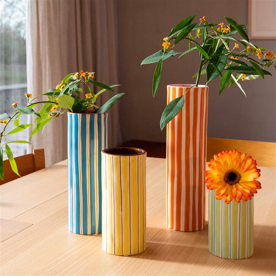 Découvrez ce vase jaune rayé de la marque néerlandaise &Klevering !