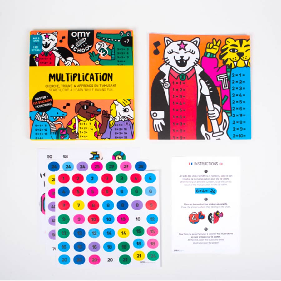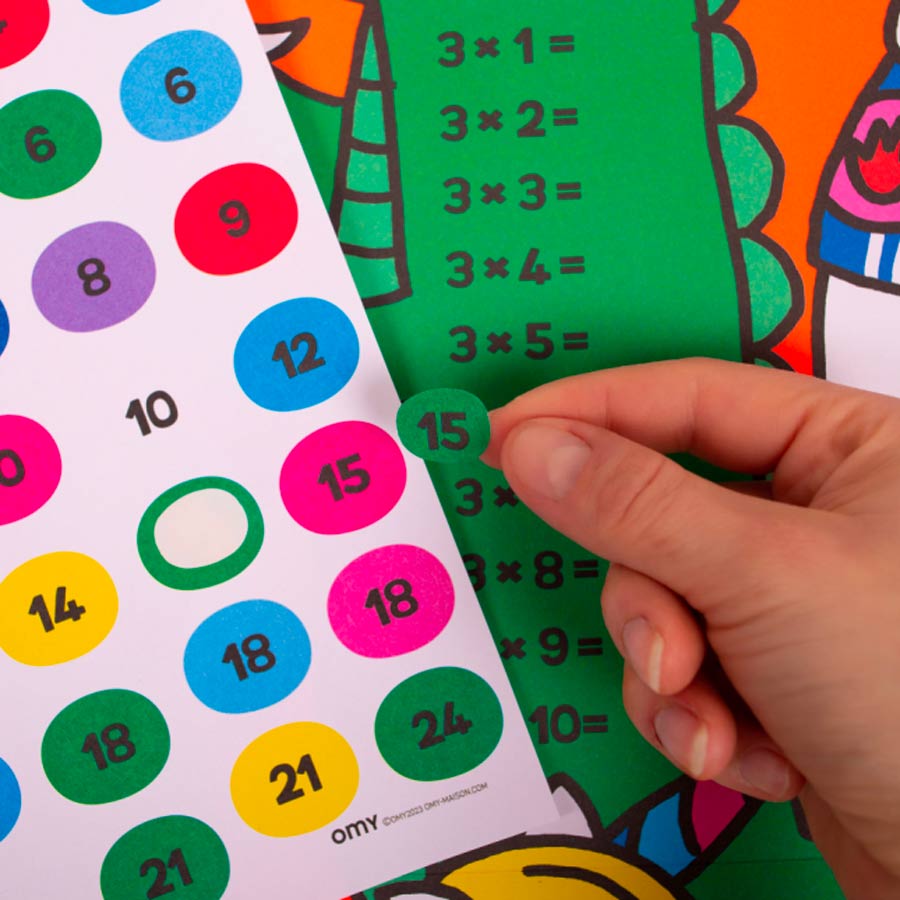 Afin d'assimiler les multiplications, votre enfant doit coller l'autocollant du résultat de chaque multiplication. C'est une méthode pour apprendre en s'amusant. Après avoir trouver toutes les solutions, votre enfant pourra décorer sa chambre avec le poster. Ainsi, il pourra réviser quotidiennement toutes ses tables de multiplications.