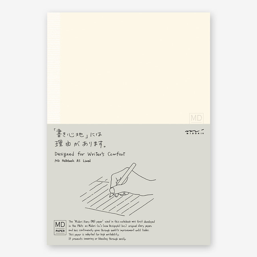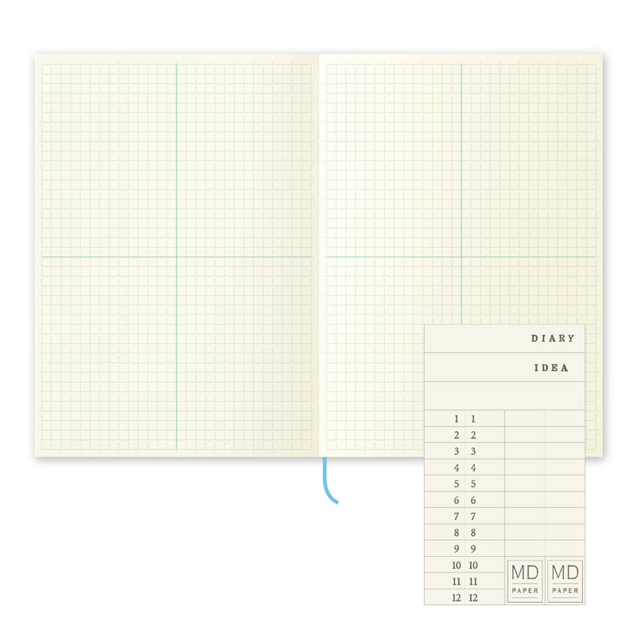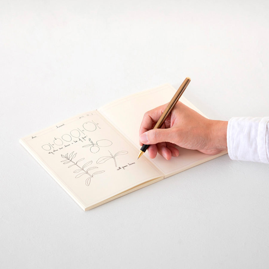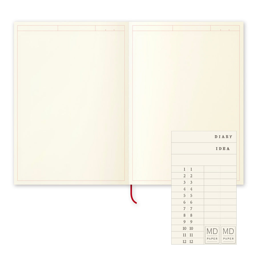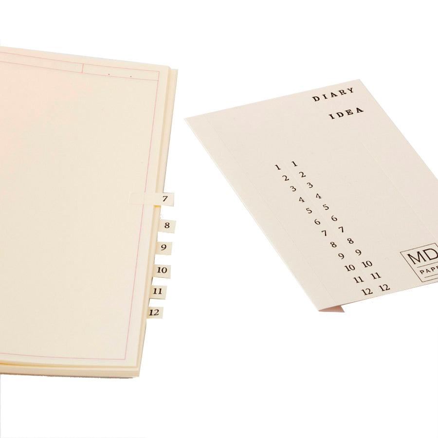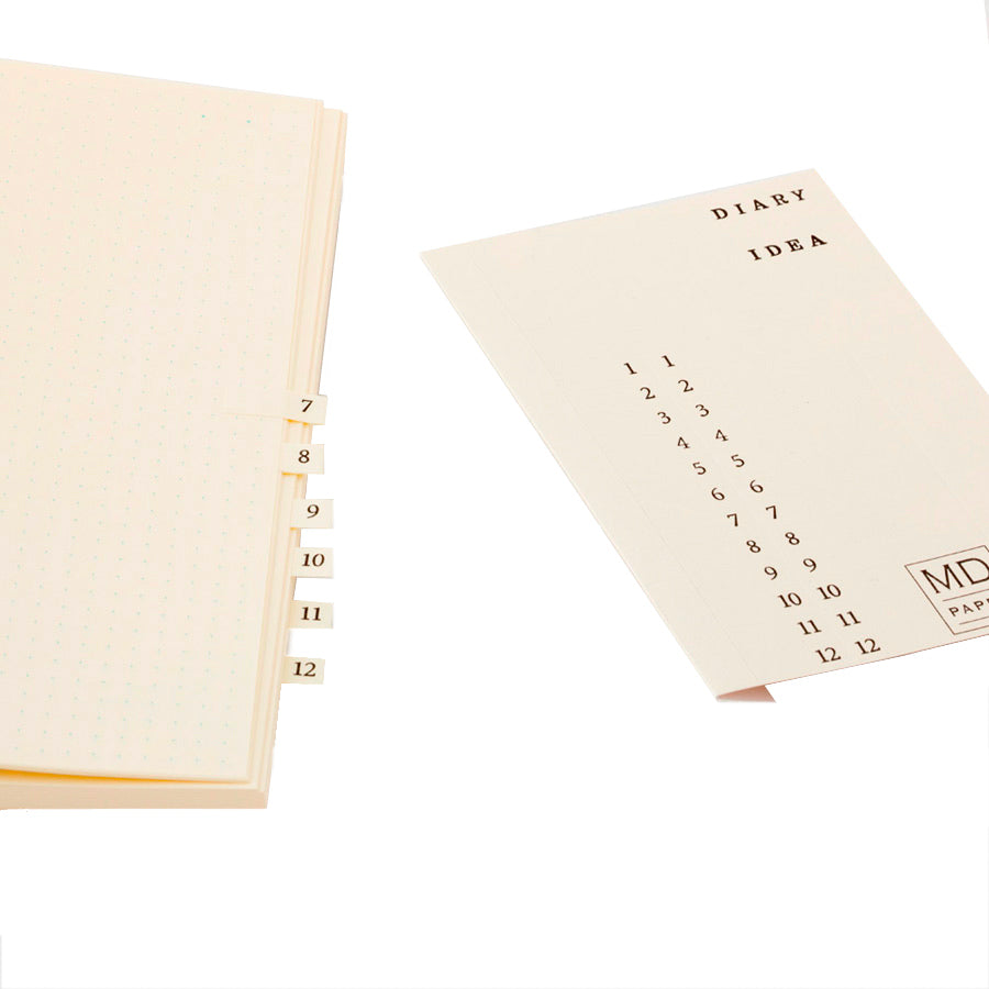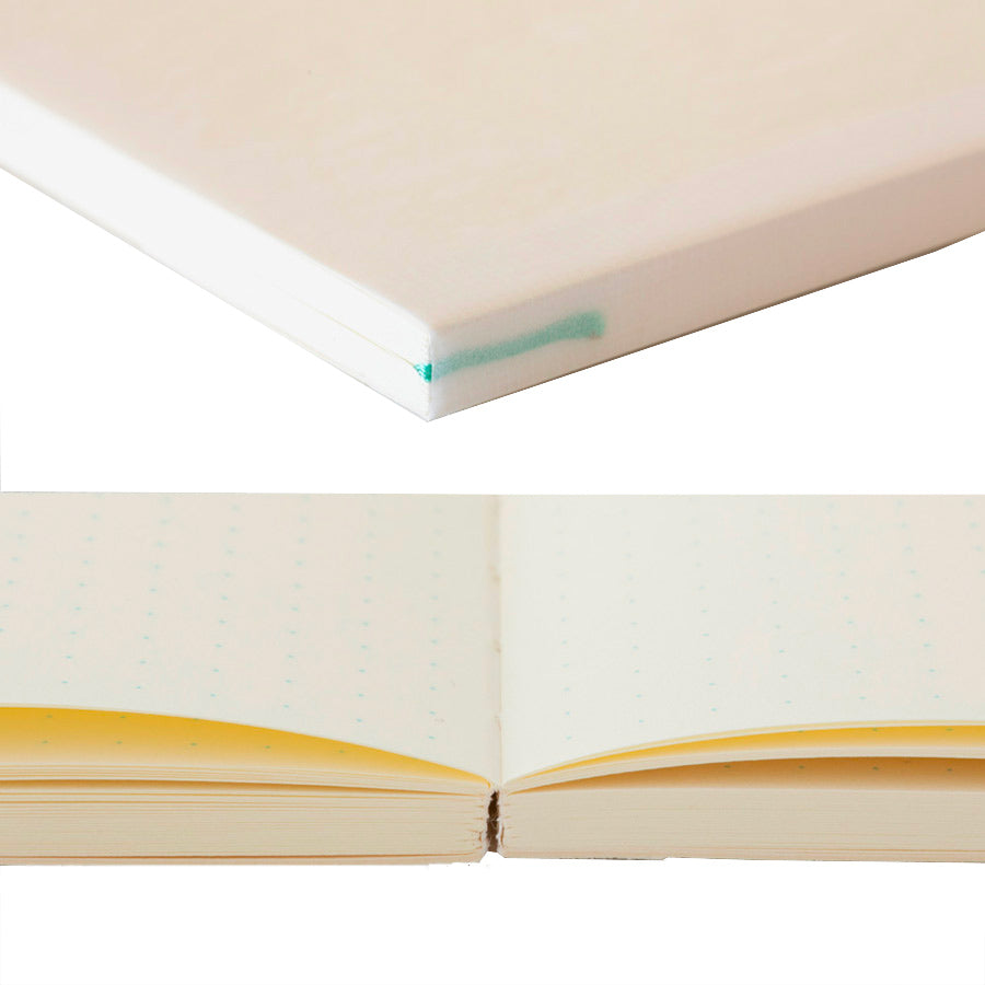 Ce carnet MD Paper au design minimaliste possède un papier japonais de grande qualité, adapté aux stylos à plume et feutres. Les carnets Midori s’ouvrent à plat grâce à leur reliure cousue au fil. Il comprend un ruban marqueur et des étiquettes autocollantes.