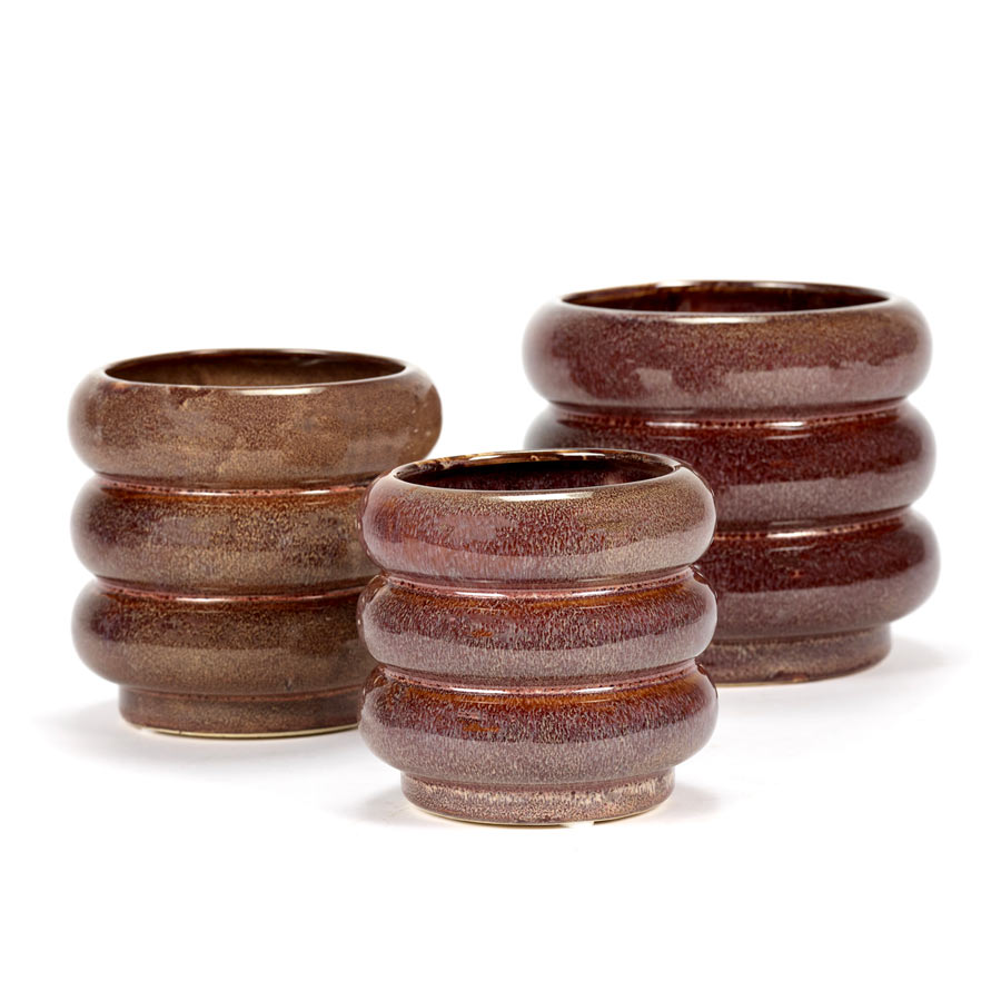 Ce pot de fleurs fabriqué en faïence fait partie de la collection Sixties de chez Serax. Il se démarque par sa forme organique, son aspect moucheté et sa couleur rouge aubergine. Il saura mettre en valeur vos plantes et vos fleurs et apportera une touche de couleur à votre maison. Disponible dans deux tailles et existe également en vert.