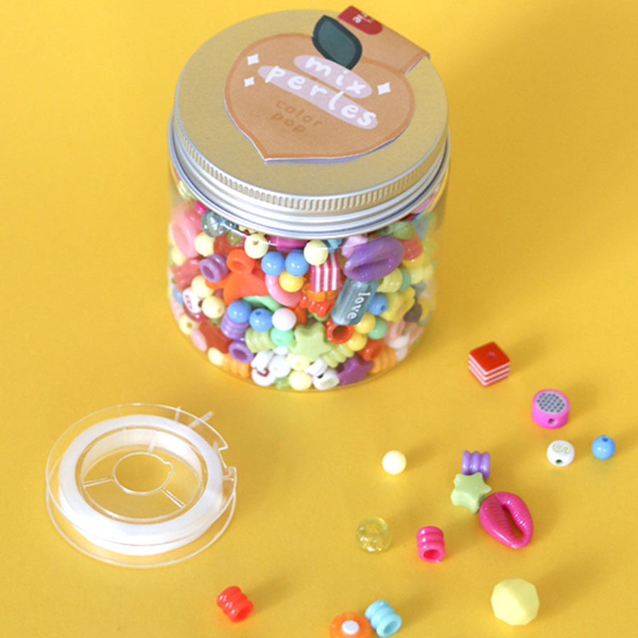 Dans chaque mix, vous trouverez une bobine de fil élastique transparent de 10 mètres permettant de confectionner pleins de colliers, bracelets et accessoires. Il y a également des accessoires pour fabriquer vos propres cordons de lunettes, porte-clés et des petites breloques pour customiser votre téléphone.