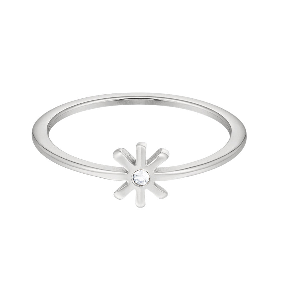 Découvrez cette élégante bague argentée ornée d'une fleur simple et d'une pierre scintillante ! Ultra-tendance, elle est idéale à assortir avec d'autres bagues pour un look moderne et stylé.