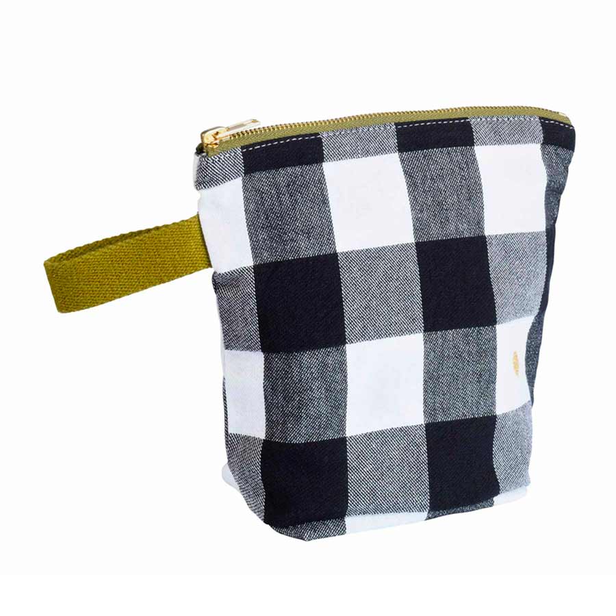 Sa fermeture éclair dorée et sa anse en coton offrent une belle finition soignée. La signature de la marque : un pois doré brodé qui apporte un petit clin d'oeil graphique sympa.