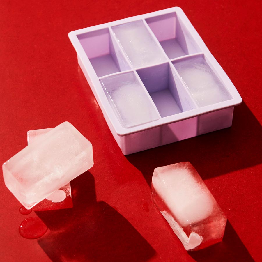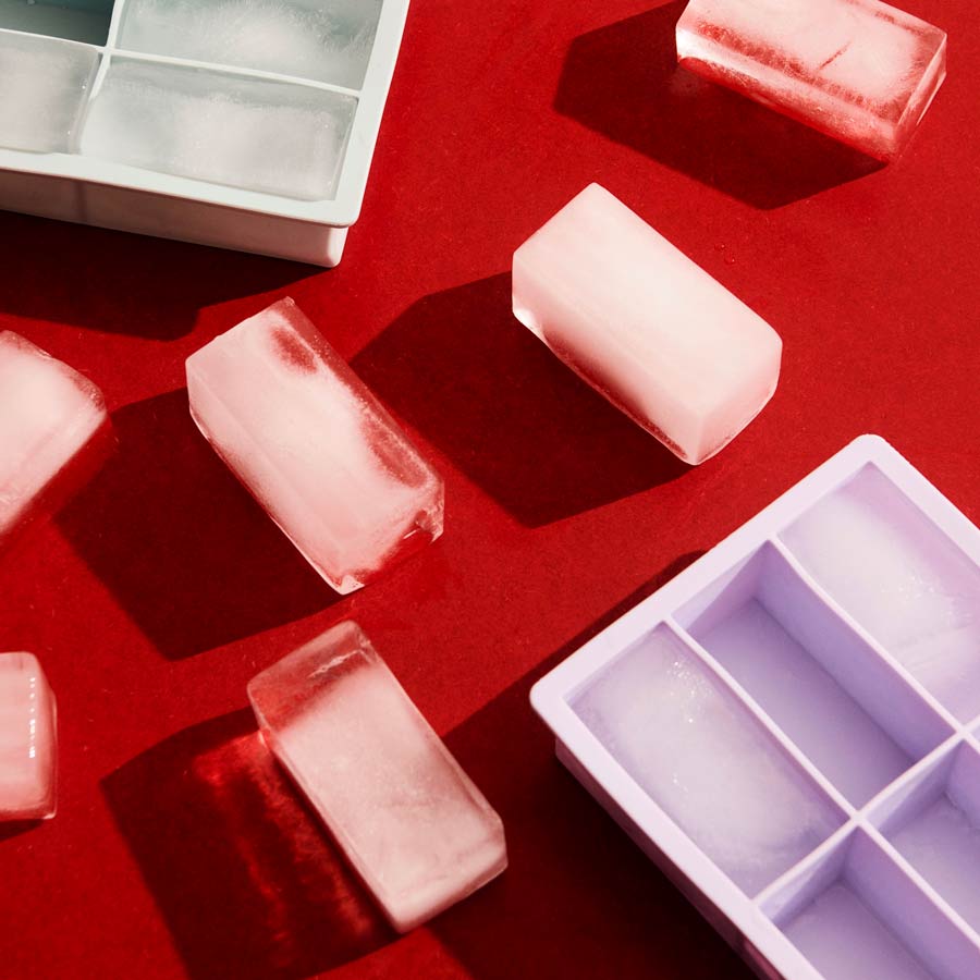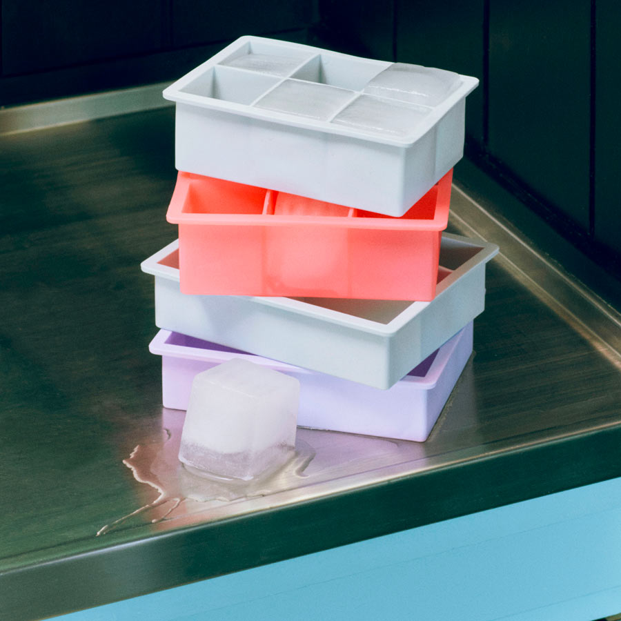 Si tu préfères les glaçons carrés plutôt que rectangulaires, on a aussi ce qu’il te faut : le bac à glaçons XXL cube, avec 6 compartiments lui aussi, dispo en rose ou en bleu glace.
