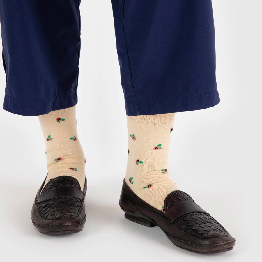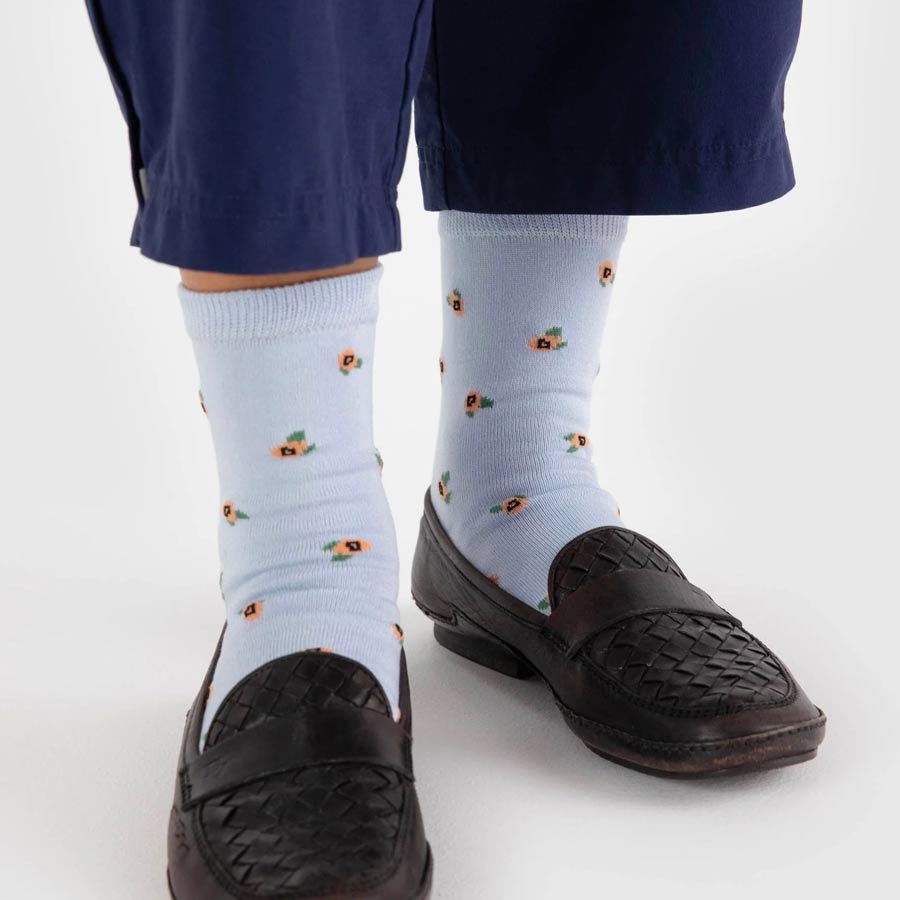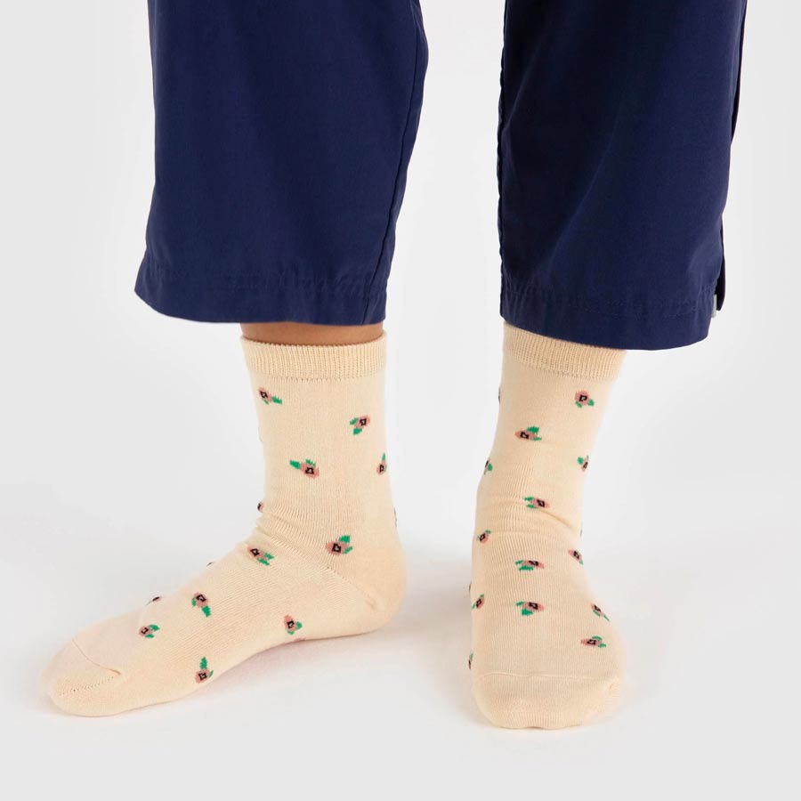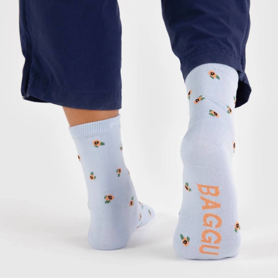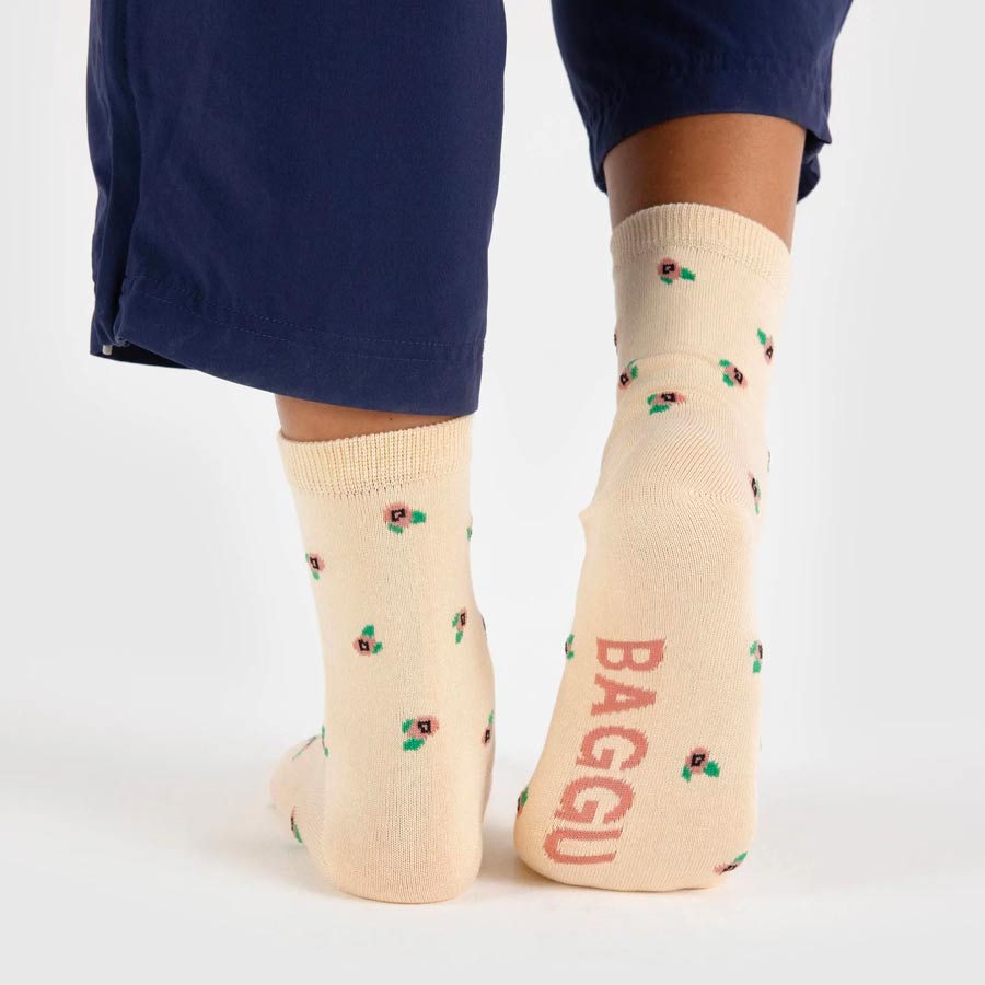 Découvrez ces chaussettes de chez Baggu ! Celles-ci possèdent de jolis motifs floraux intemporels. Fabriquées à partir de rayonne de bambou, elles permettent de garder vos pieds au chaud tout en ajoutant une touche de douceur et d'élégance à votre tenue.