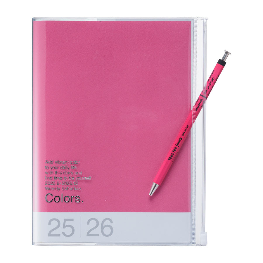 De septembre 2025 à décembre 2026. Cet agenda se décline en format A6 et en différentes couleurs.