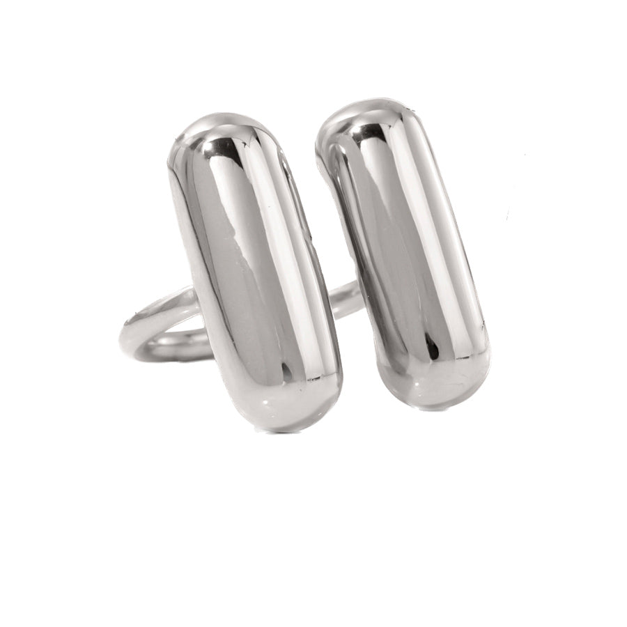 Voici la bague double ovale, une pièce minimaliste mais pleine d’effet. Deux formes longues et bombées, comme deux petits galets posés côte à côte… et tout ça, sur une seule bague.