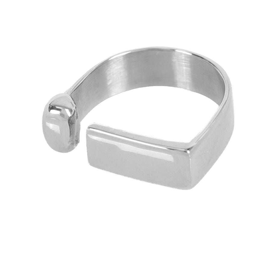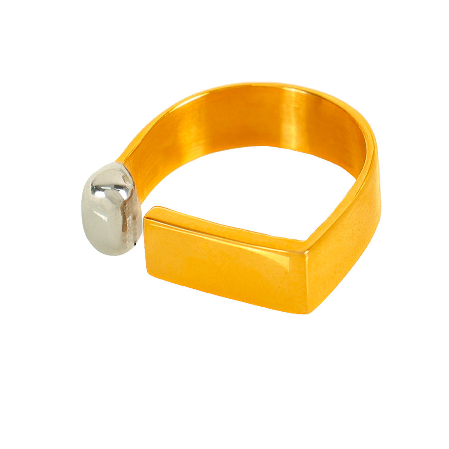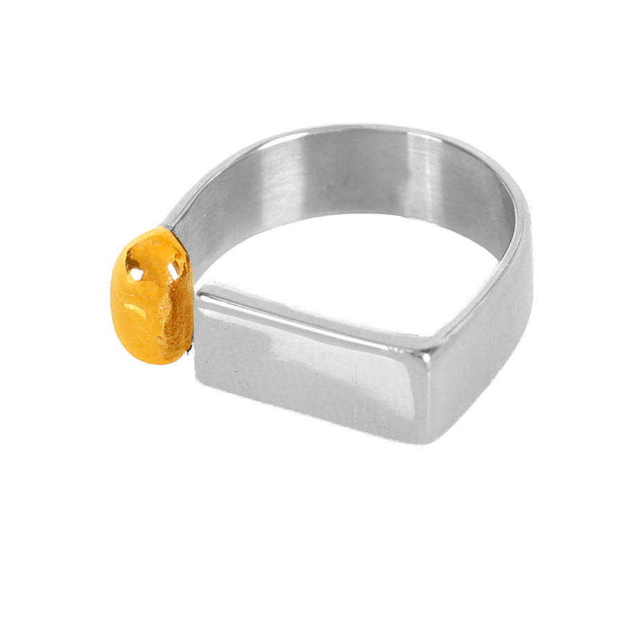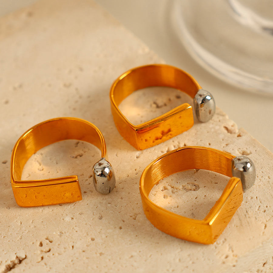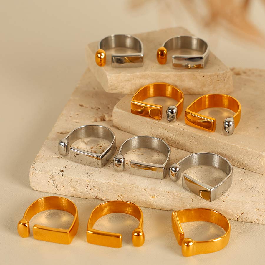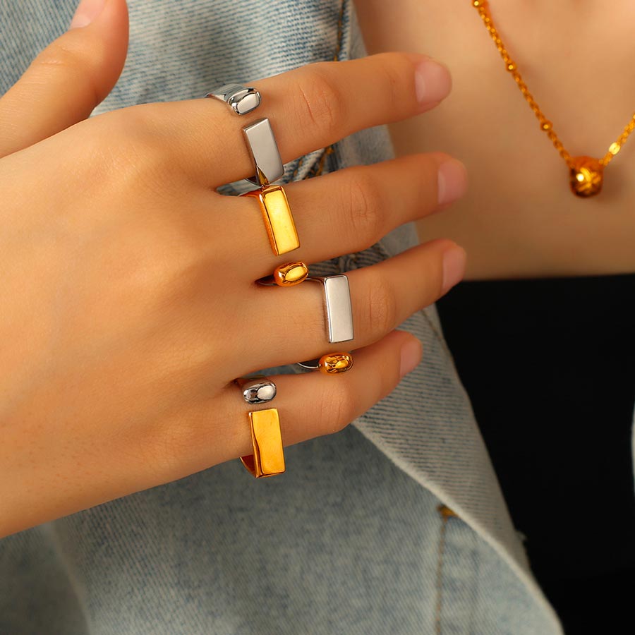 Voici notre bague géométrique : un design minimaliste mais ultra graphique, pile dans l’air du temps. originale sans être compliquée, elle habille la main avec style.