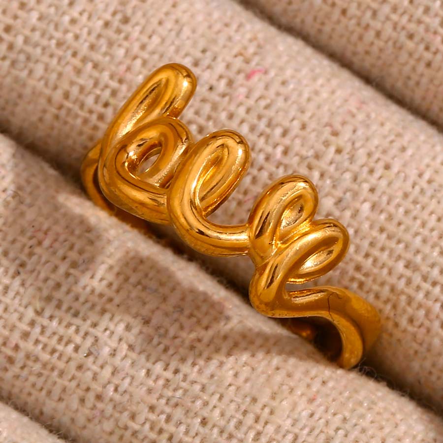 Un petit mot tout simple, mais qui change tout. Avec son lettrage arrondi comme tracé à la main, notre bague love est cette touche d’amour qu’on porte sans y penser… mais qui fait toujours du bien.