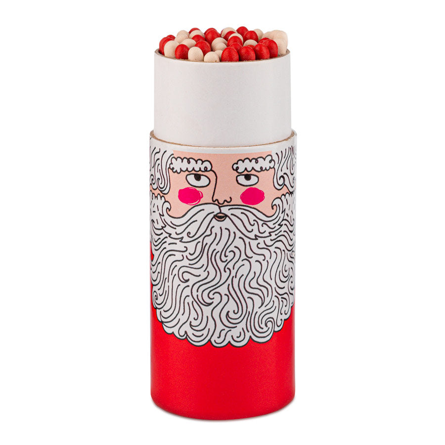 La boite d'allumette cylindrique au motif de père Noël. Cette boite d'allumette qui prolonge la magie des fêtes de fin d'année a été conçue en collaboration avec Charlotte Farmer.