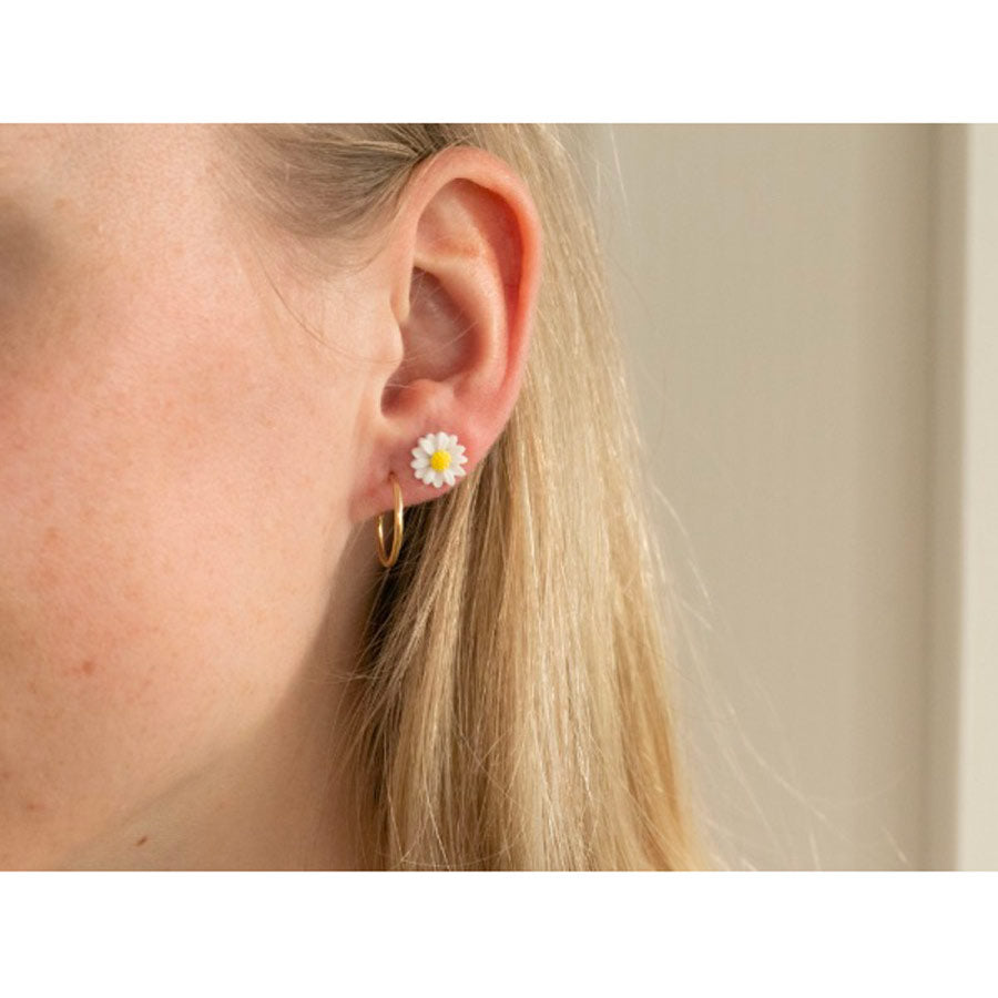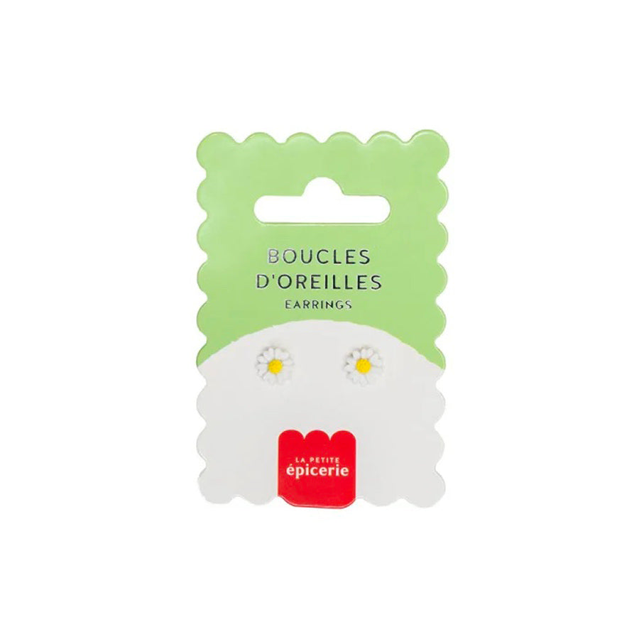 Découvrez les boucles d'oreilles puces en forme de marguerite de La Petite Epicerie. Fabriquées en porcelaine, celles-ci sont si légères que vous oublierez même que vous les portez. Montées sur des attaches en acier inoxydable, elles conviennent aux peaux sensibles.
