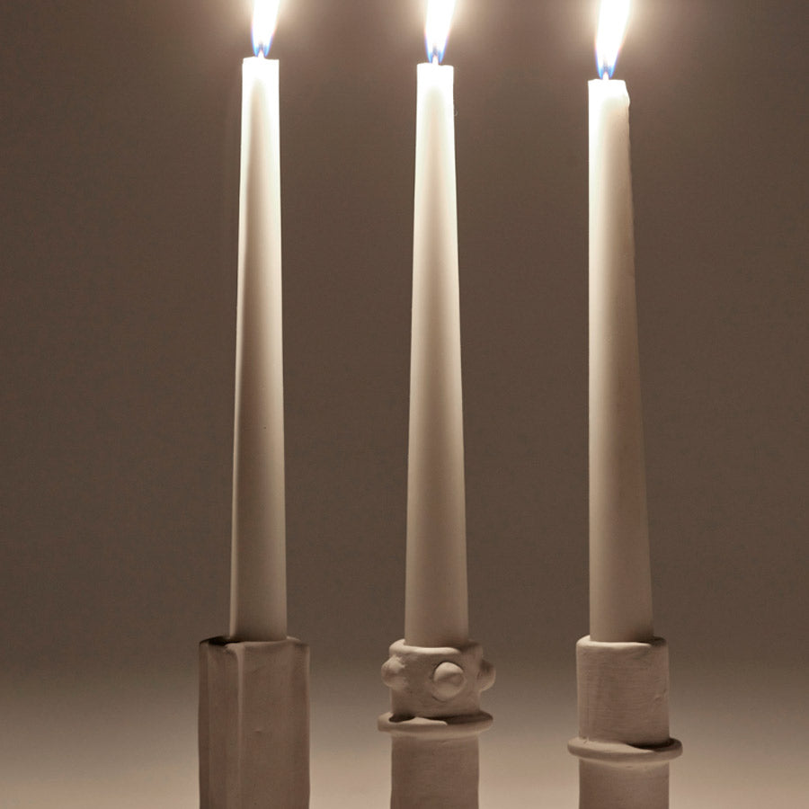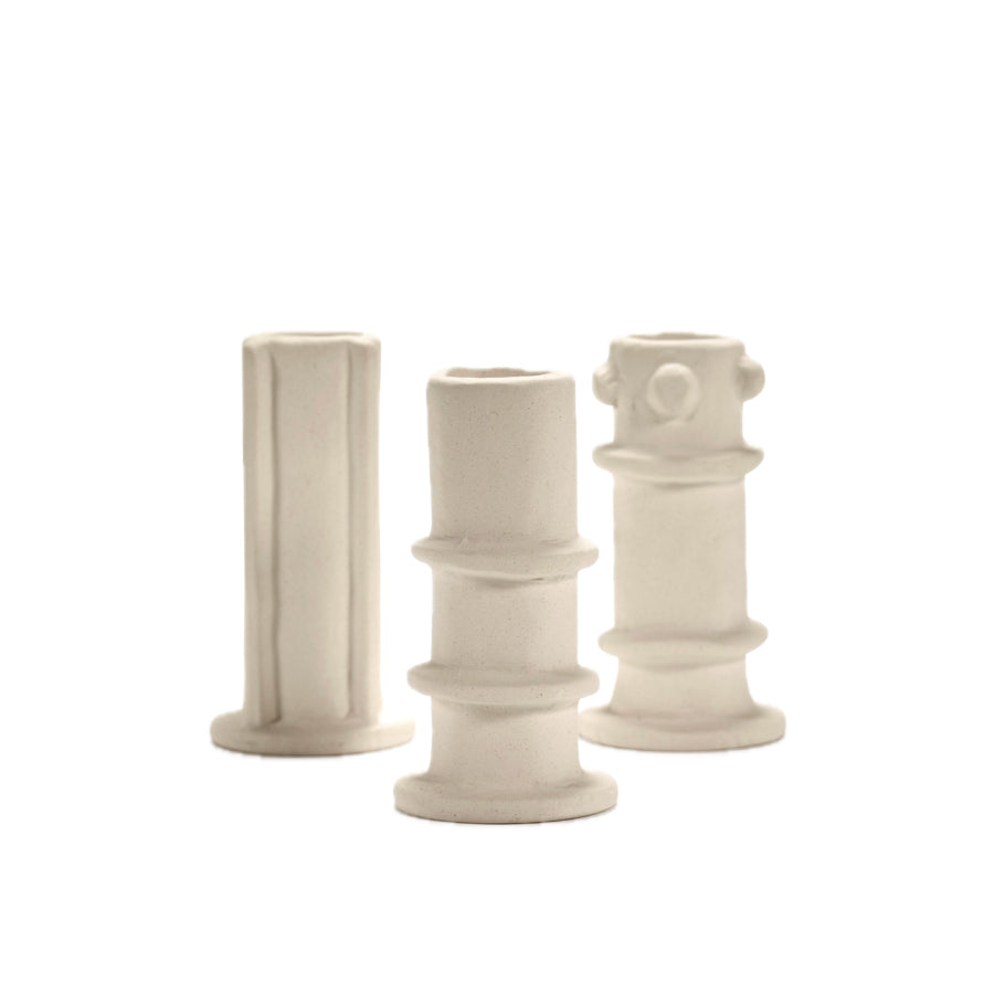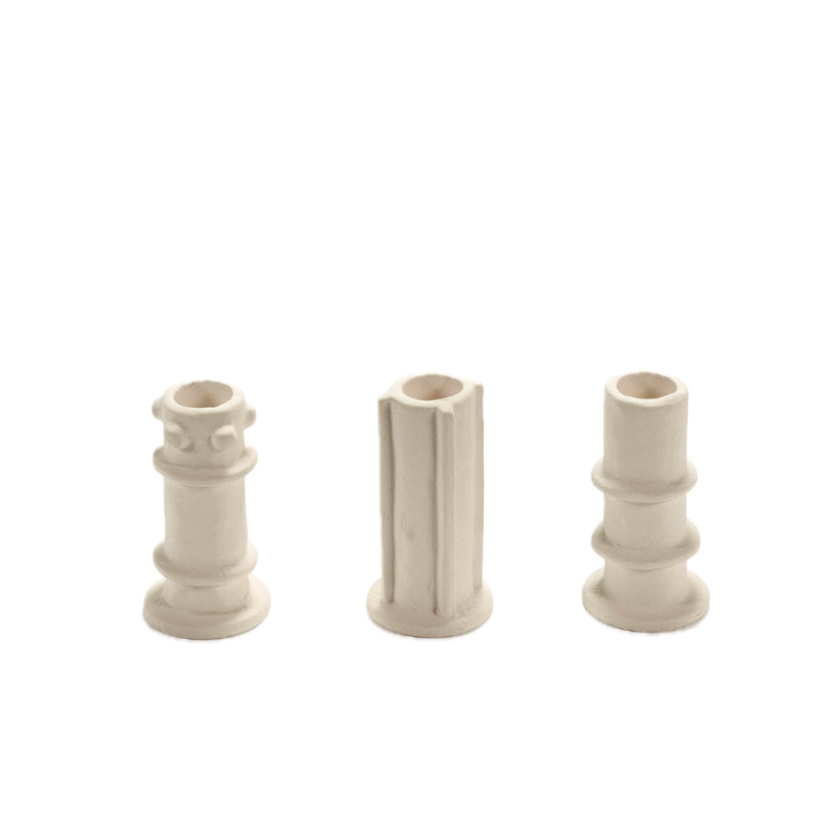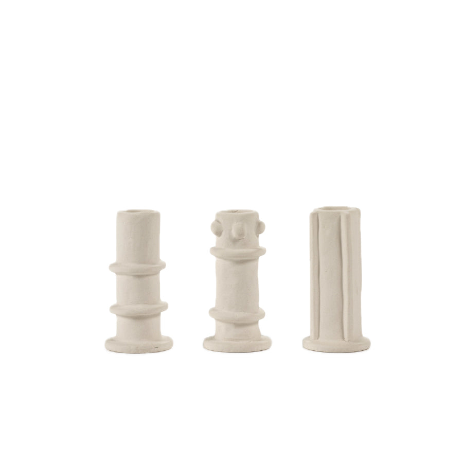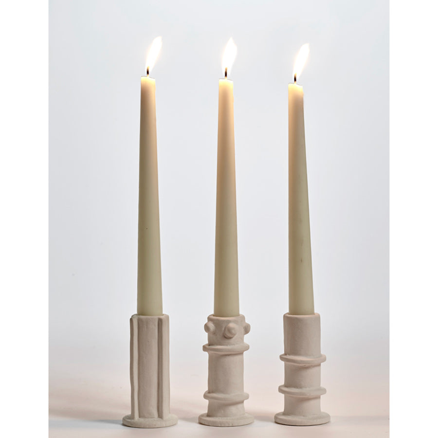 Imaginé par la designer Marie Michielssen, ce bougeoir se distingue par ses petits pois et anneaux en relief. Son allure graphique et sa finition mate en font un objet à la fois minimaliste et expressif, parfait pour habiller une table ou une étagère avec subtilité.