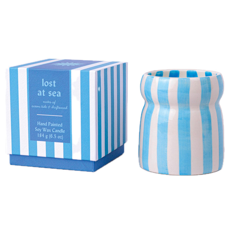 Direction le bord de mer sans bouger de ton canapé ! La bougie Cabana “Lost At Sea” de Paddywax capture l’esprit des vacances entre parasols rayés, brise marine et lumière d’été.
