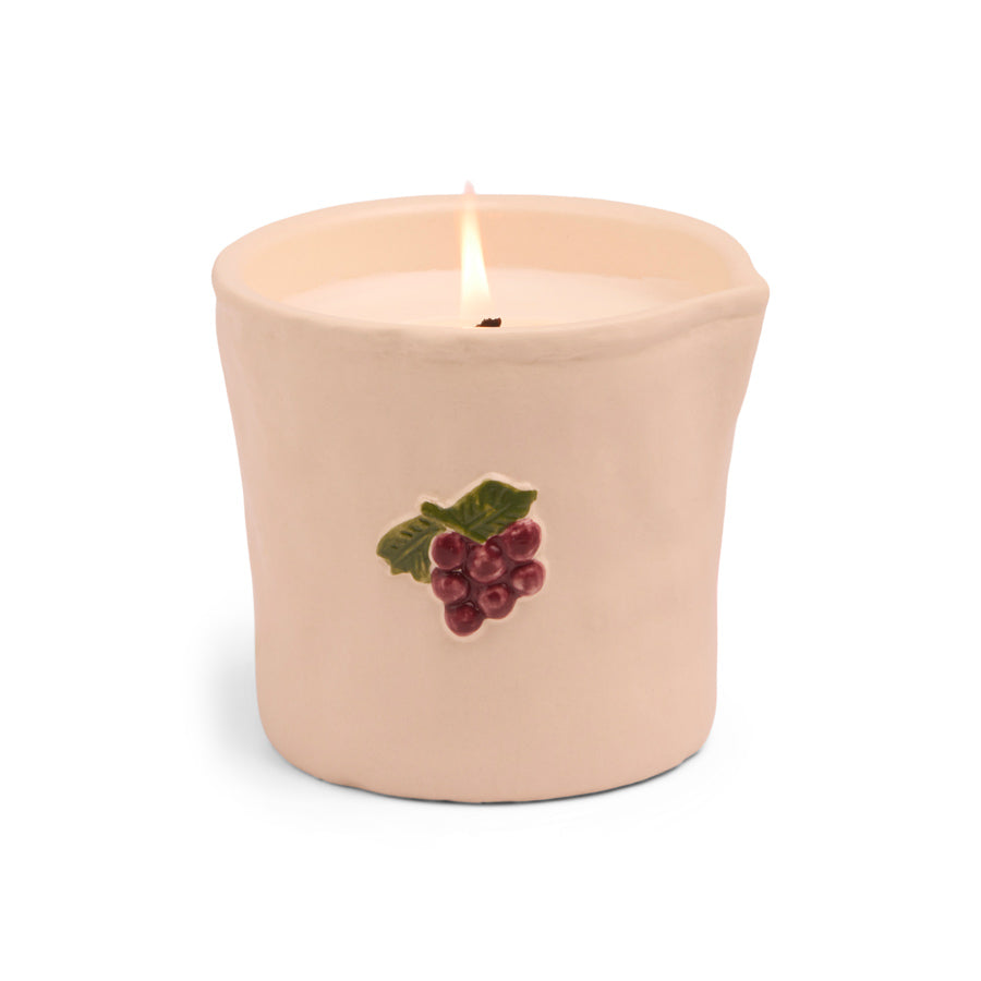 Cette bougie est nichée dans un superbe pot en céramique blanc légèrement texturé, offrant une esthétique à la fois épurée et sophistiquée. Son petit plus ? Un motif de grappe de raisin peint à la main, qui évoque toute l’authenticité et le charme des vignobles français.