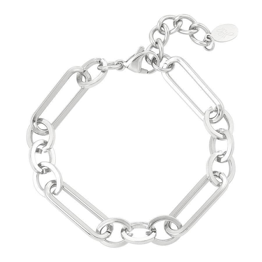 Comme il est cool, ce bracelet argenté à maillons épais ! Parfaits pour une occasion chic, ils peuvent également être portés de manière quotidienne en les combinant avec plusieurs autres bracelets.
