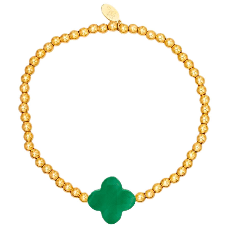 Besoin d’un peu de chance et d’élégance à votre poignet ? Ce bracelet en perles dorées sublimé par un trèfle vert est votre nouvel allié style et porte-bonheur. Avec son mélange raffiné de perles dorées éclatantes et sa pierre en forme de trèfle, il apporte cette touche chic et symbolique qu’on adore.