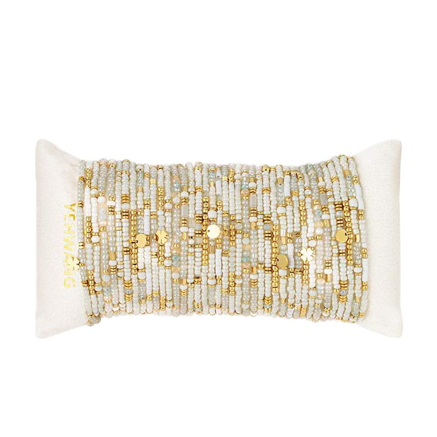 Tu cherches un bracelet à la fois discret et sophistiqué ? Celui-ci coche toutes les cases ! Avec ses perles blanches aux reflets nacrés et ses accents dorés lumineux, il apporte juste ce qu’il faut d’éclat à ton poignet. Un bijou qui traverse les tendances sans jamais se démoder.