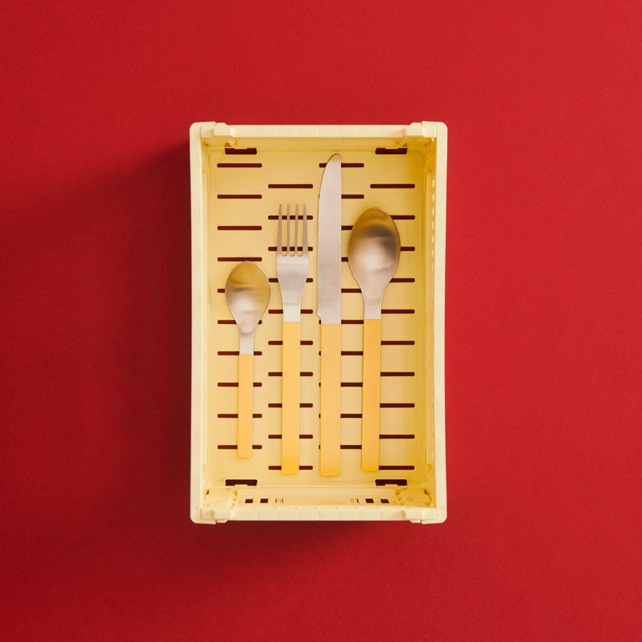 La cagette taille S jaune clair de la marque danoise HAY allie praticité, design et durabilité. Parfaite pour ranger tout ce qui traîne avec style, elle s’intègre facilement dans toutes les pièces de la maison.