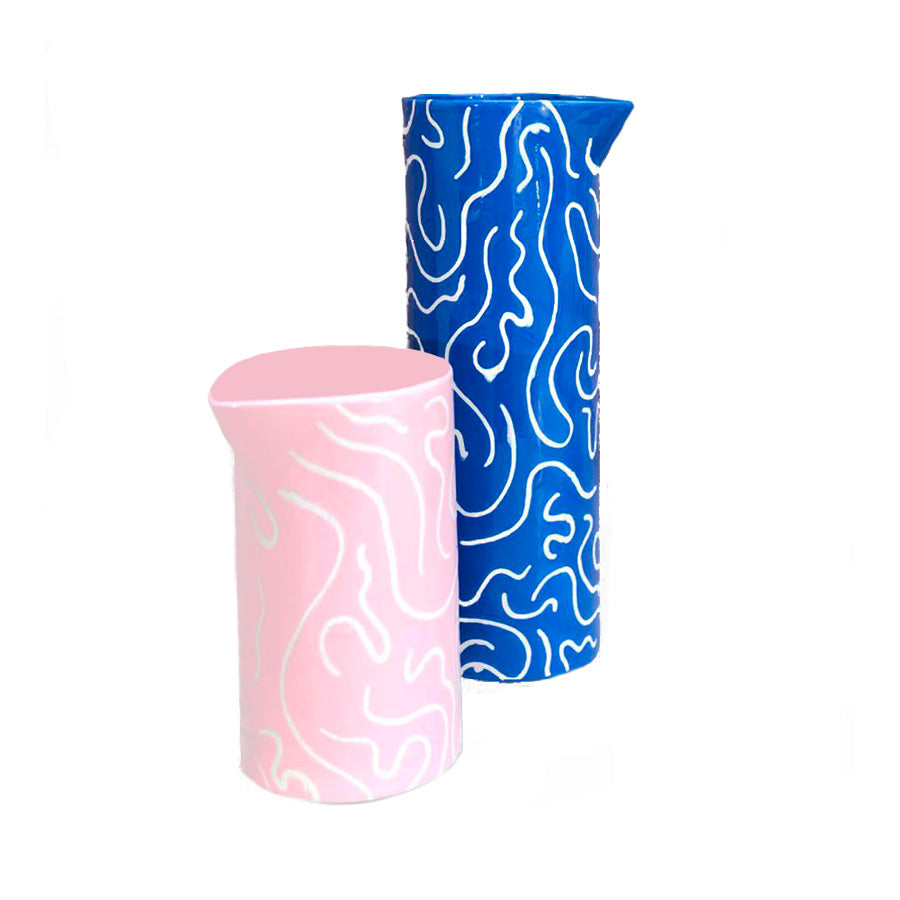 Découvrez cette carafe soba de la marque néerlandaise &Klevering ! Fabriqué en porcelaine, ce pichet aux lignes abstraites est peint à la main.