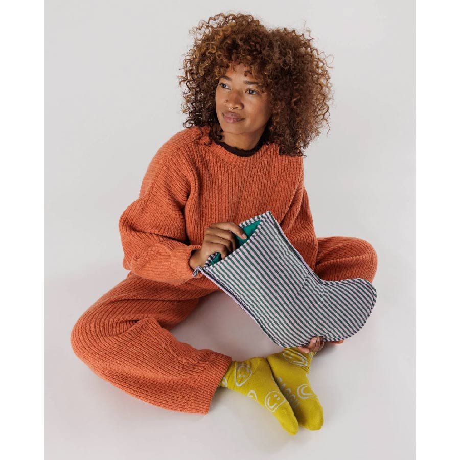 Les emblématiques chaussettes de Noël customisées avec les motifs de la marque Baggu. Cette année, la célèbre marque américaine s'invite dans les préparatifs des fêtes de Noël en réinterprétant un indispensable : la chaussette que l'on accroche à proximité de la cheminée pour que le père Noël y glisse nos cadeaux.