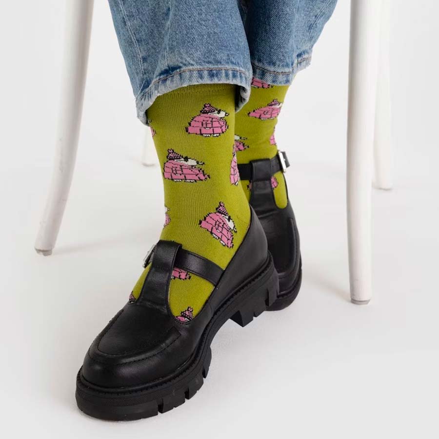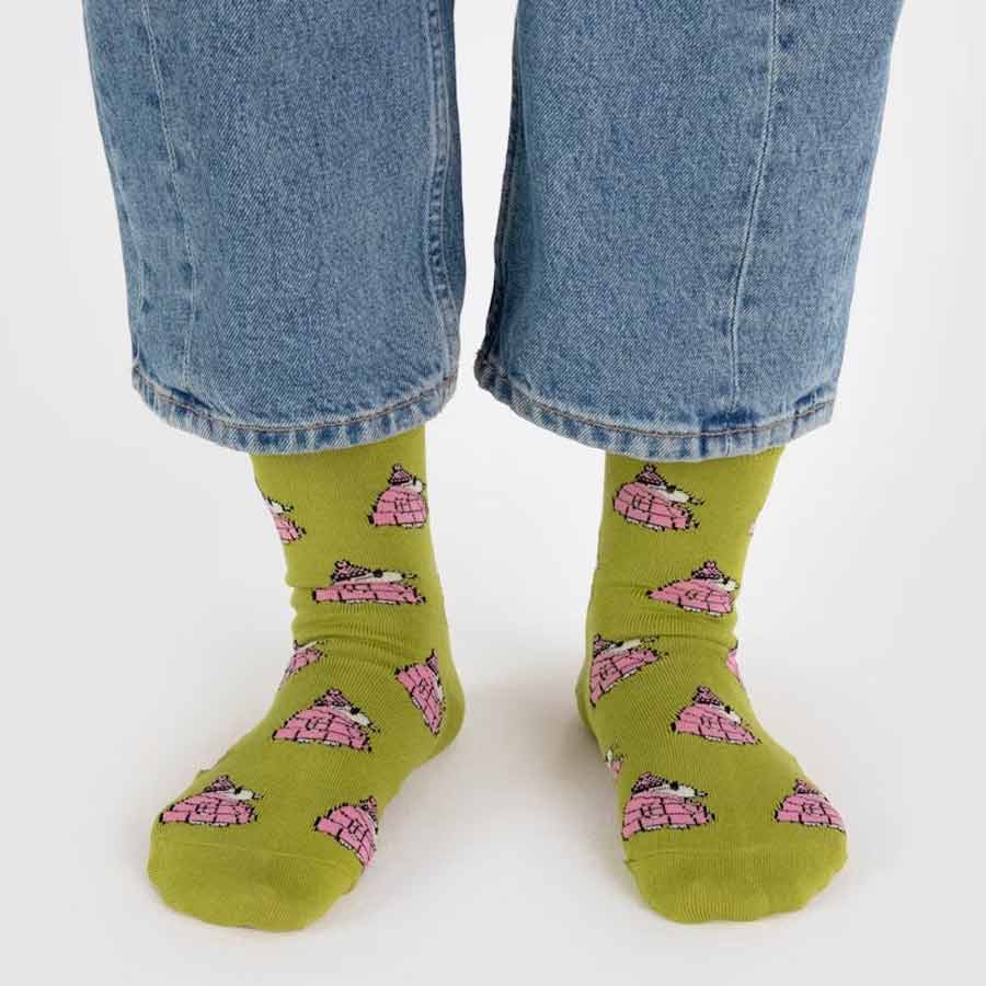 Ajoutez une touche de fun à votre tenue avec ces chaussettes vertes imprimées Snoopy de chez Baggu. Parfaites pour apporter une dose de bonne humeur à vos journées, elles vous accompagneront partout ! Douces, extensibles et confortables, ces chaussettes mi-hautes ne passeront pas inaperçu !