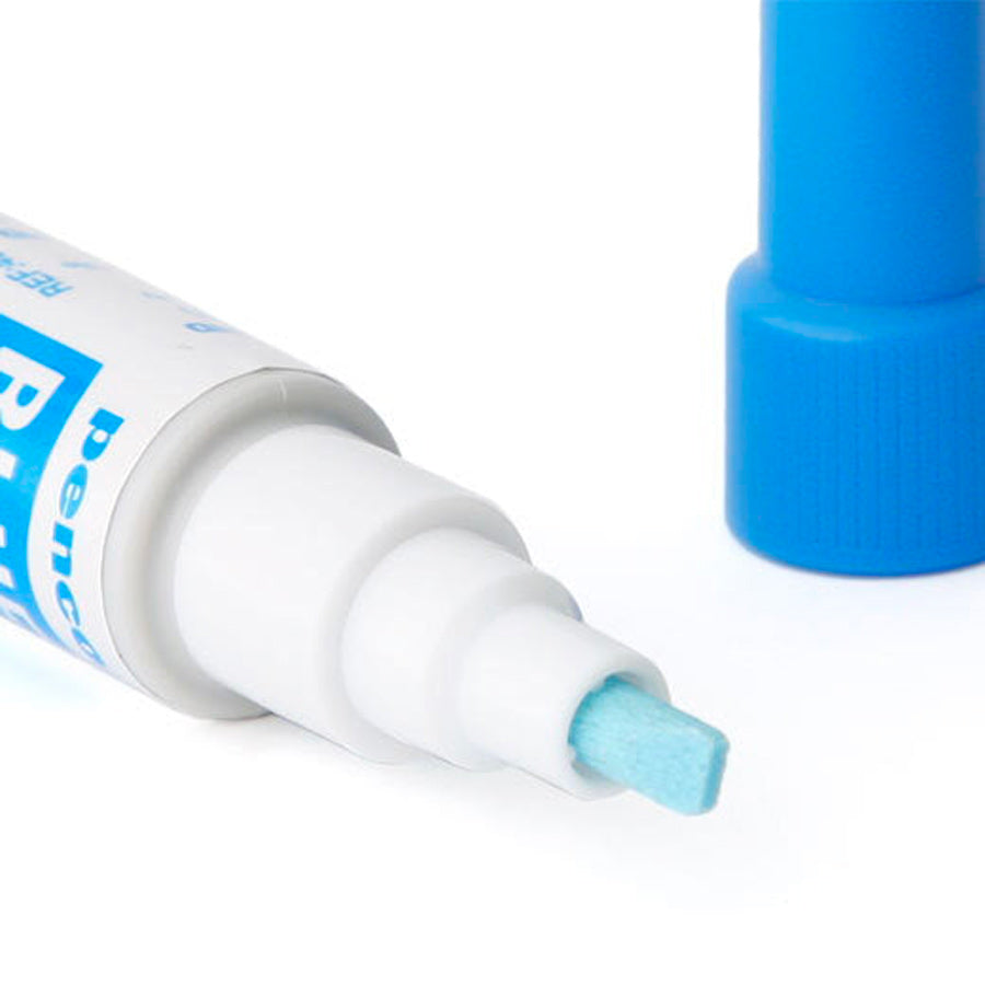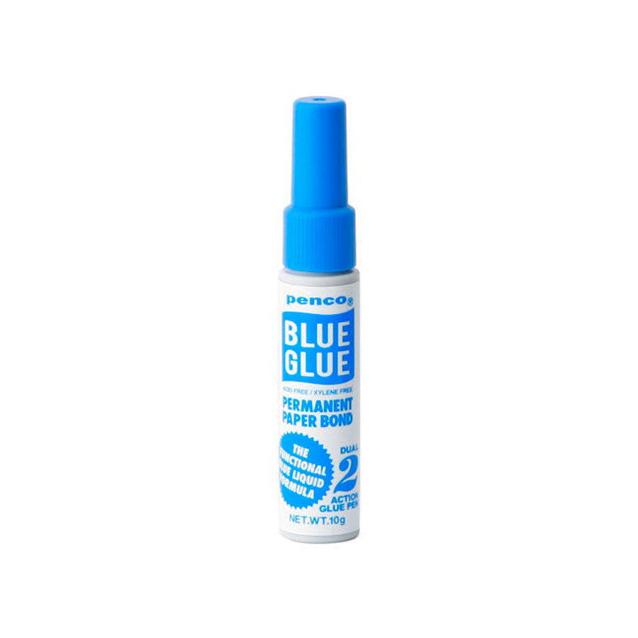 Le tube de colle Blue glue pen de chez Penco. Cette colle sans acides a la particularité de pouvoir s'utiliser de deux manières :