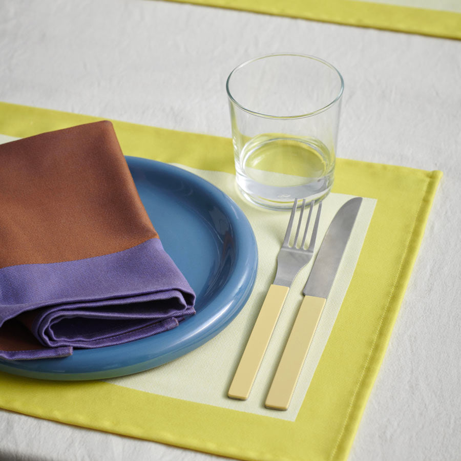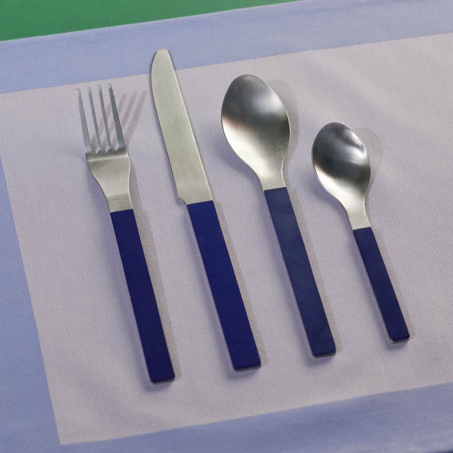 Découvrez les couverts MVS, fruit de la collaboration entre Muller Van Severen et HAY. Ces couverts marient avec élégance le minimalisme caractéristique du duo de designers à une utilisation judicieuse de la couleur, créant ainsi un ensemble à la fois distinctif et fonctionnel.