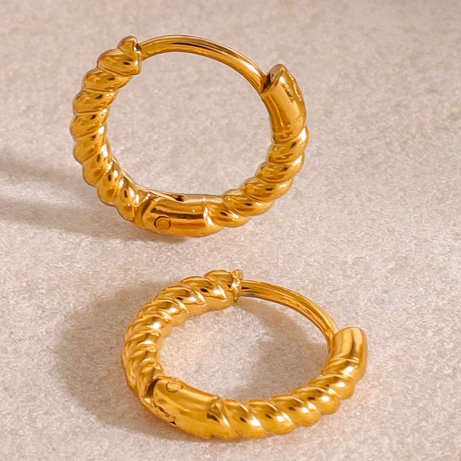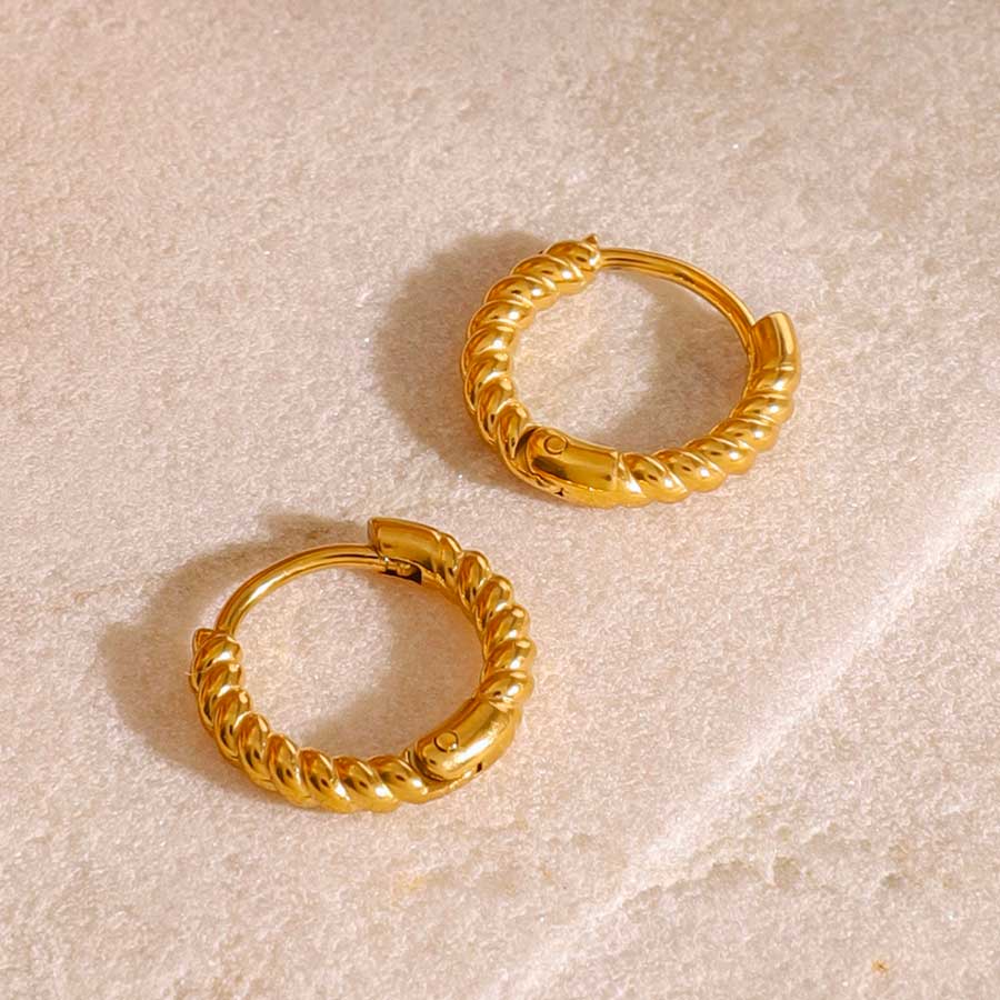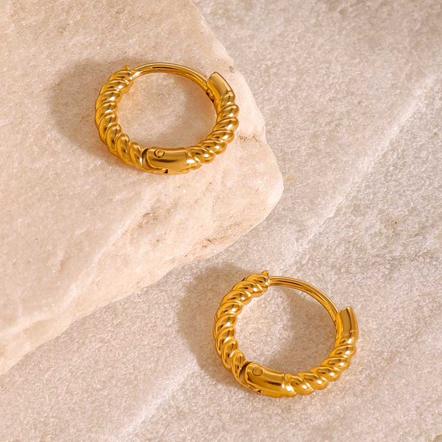 Ces créoles twist dorées sont la définition même du bijou simple… avec du relief. Leur forme torsadée capte la lumière à chaque mouvement et apporte une vraie présence, tout en restant discrète et facile à porter.