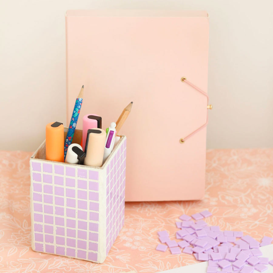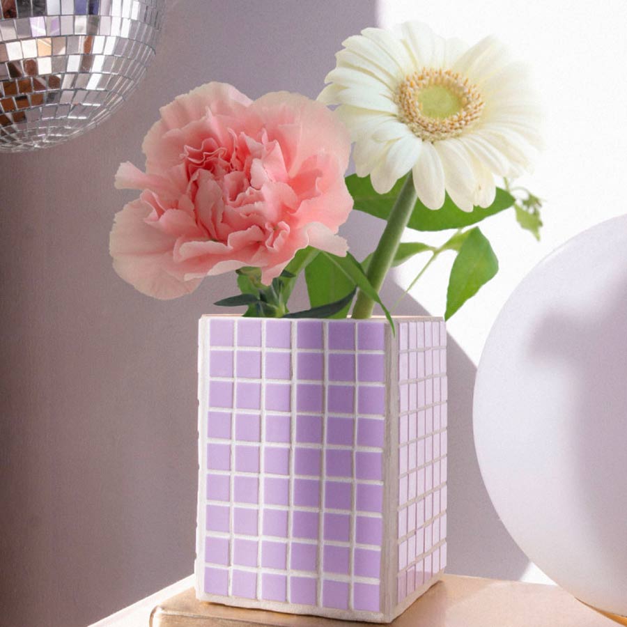 Au programme : un mini vase (ou pot, c’est vous qui voyez) à recouvrir de jolies tesselles violettes. Et pas de panique si vous débutez, tout est ultra bien expliqué. On colle, on jointe, on admire. C’est relaxant, satisfaisant… et à la fin, on peut dire fièrement "c’est moi qui l’ai fait !"
