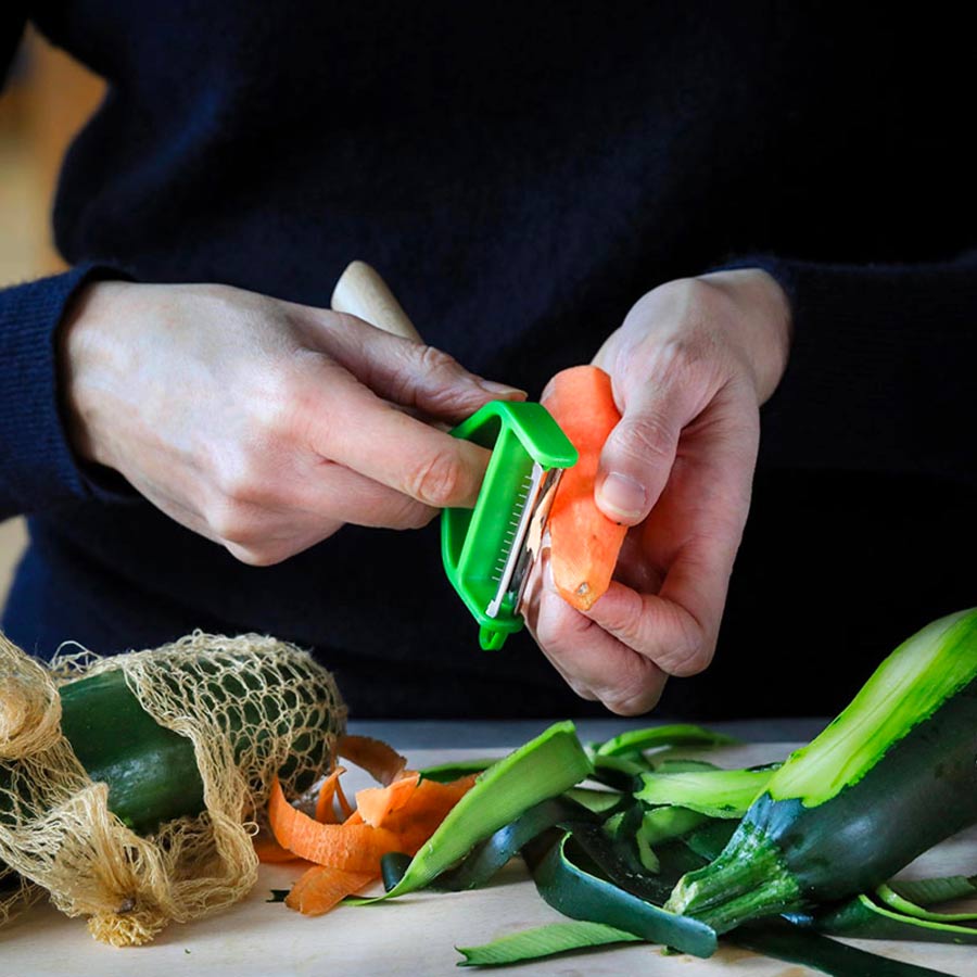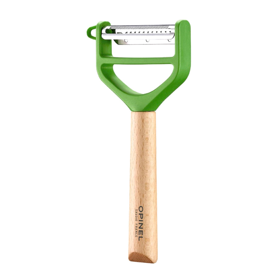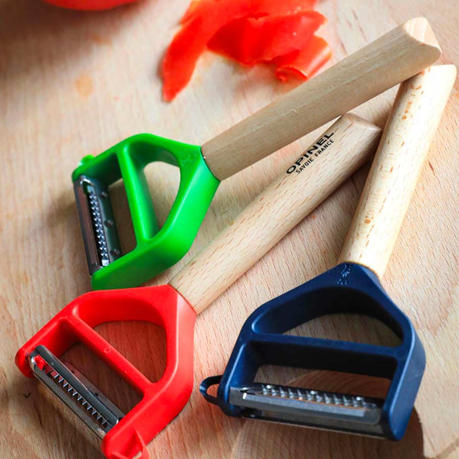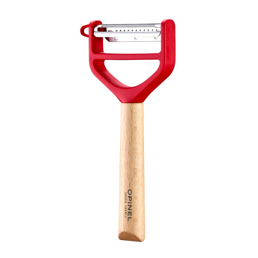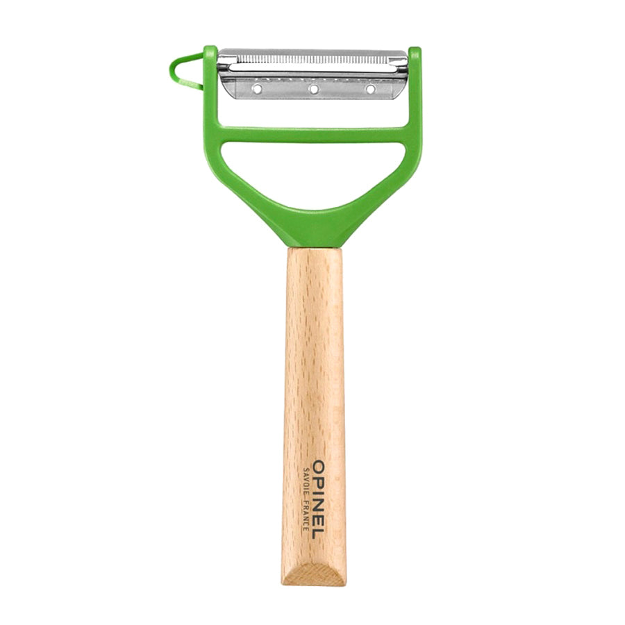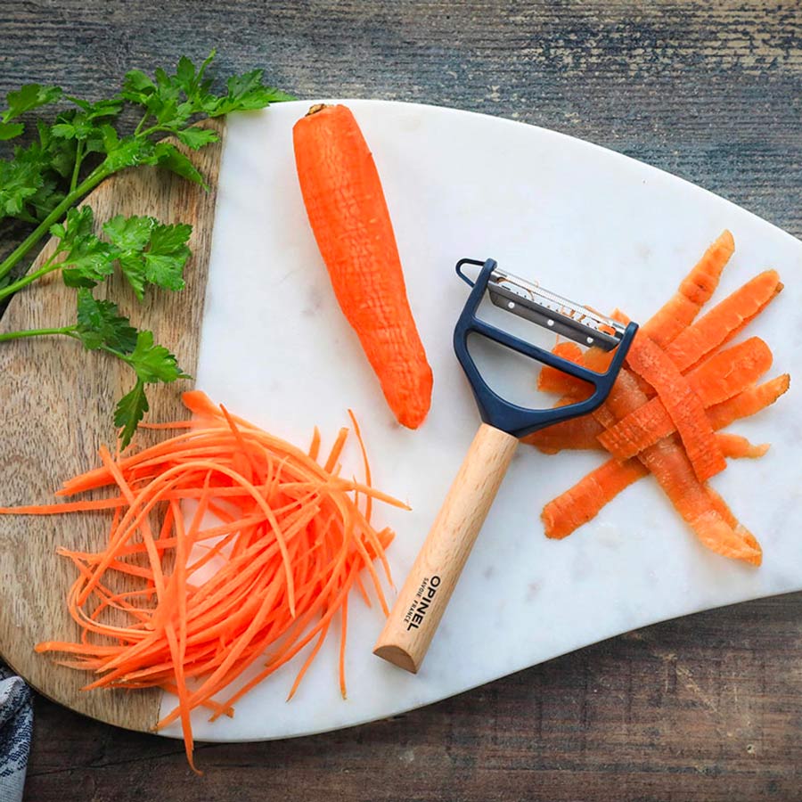 L' éplucheur T-Duo de la marque Opinel. Cet économe est équipé de deux lames recto verso mobiles en acier inoxydable.