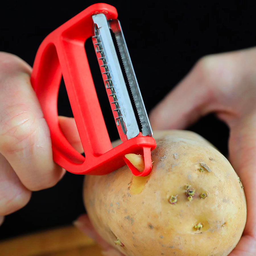 La première lame, permet d'éplucher facilement les légumes et notamment les tomates, poivrons et aubergines grâce à sa microdenture.