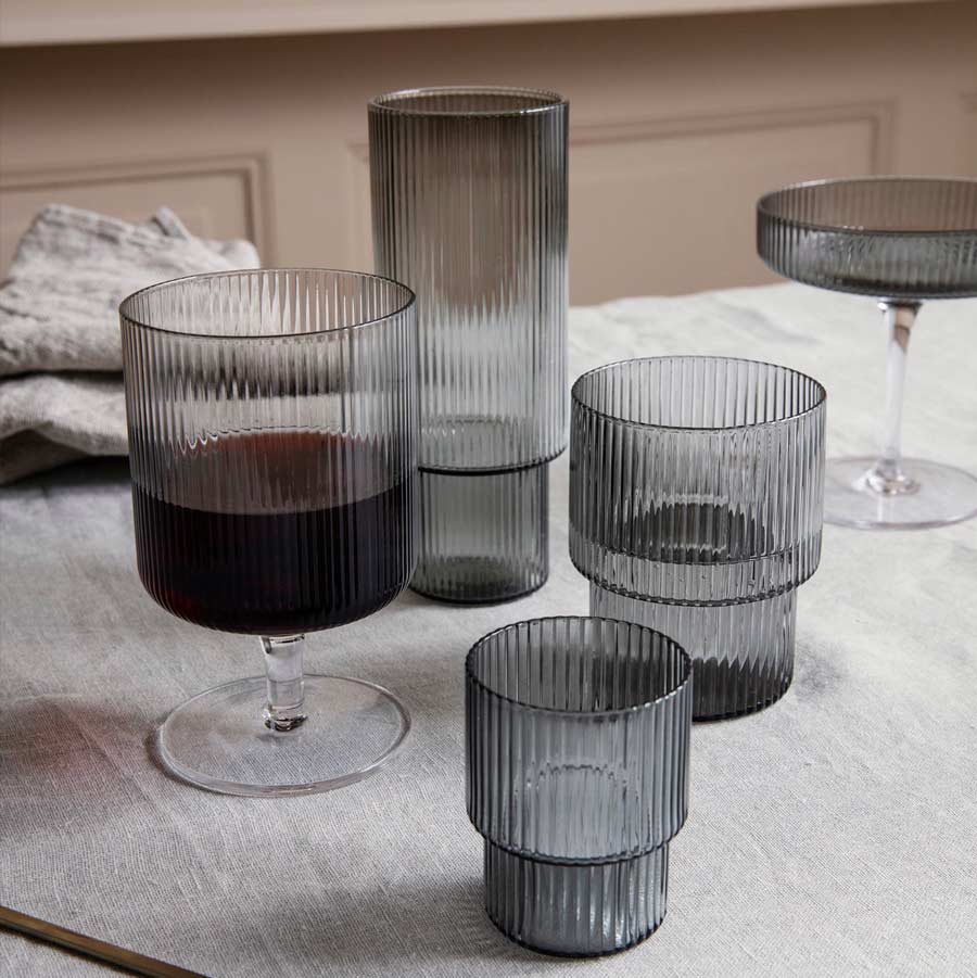 Un design épuré pour cet ensemble de verres à vin gris fumé de la marque Ferm Living. Dotés d'une surface ondulée, ils sont faits de verre délicat soufflé à la bouche dans un moule. Ces verres à vin Ripple complétera n'importe quel décor avec son design unique.