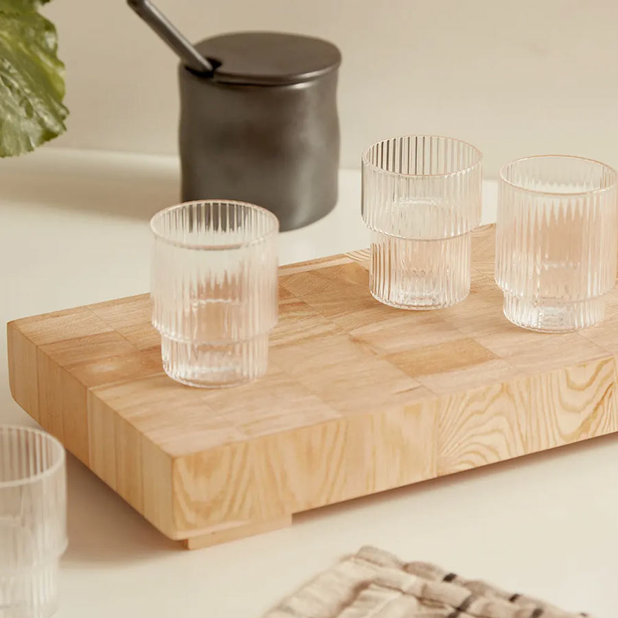 Le set de 4 petits verres Ripple de la marque Ferm Living. Une version plus petite des verres à boire Ripple d'origine.