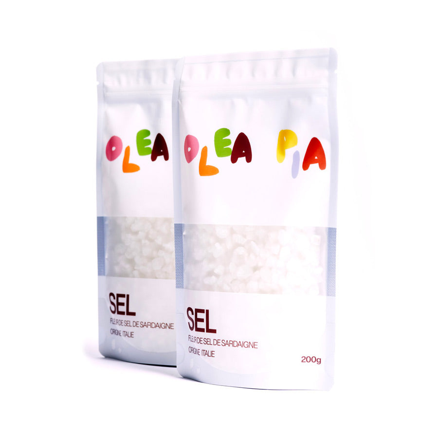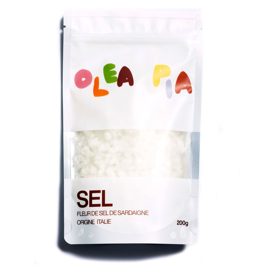 La fleur de sel d'Oléa Pia est produite en Sardaigne et à Sant'Antioco deux iles du Sud de l'Italie. C'est un sel de mer fin récolté à la main. Il est obtenu à partir de l'eau de mer salée et séché lentement et naturellement par le soleil.