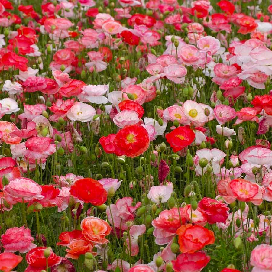 Le paquet de 150 graines de coquelicots de la marque Piccolo. Il est possible de retrouver des fleurs bicolores semi-doubles, doubles de couleur orange, rose, rose et pêche.