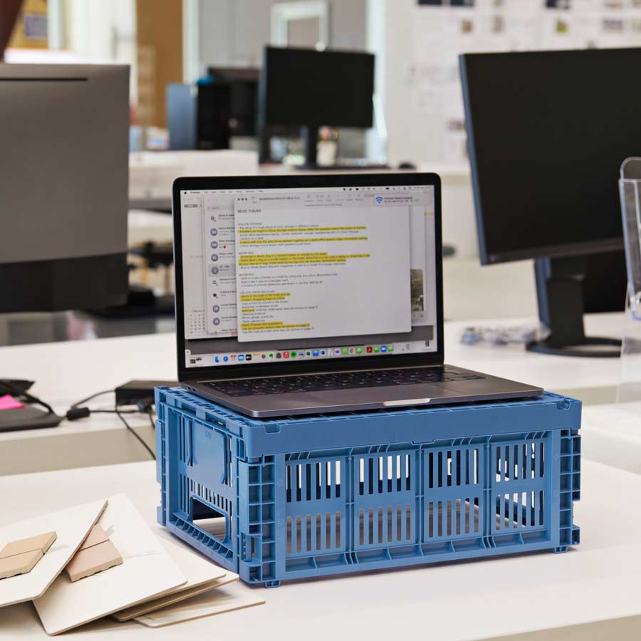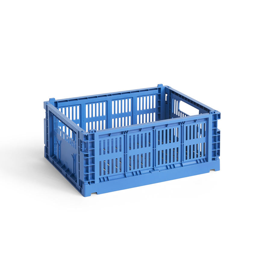 La cagette bleu électrique en taille M de la marque danoise Hay. Inspirée des bacs de maraîcher, cette nouvelle gamme de caisse design est fabriqué à partir de déchets plastiques post-consommation 100 % recyclés.