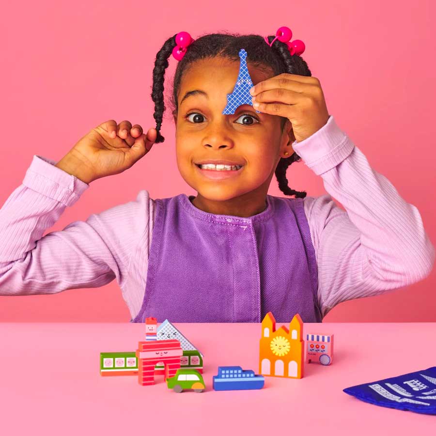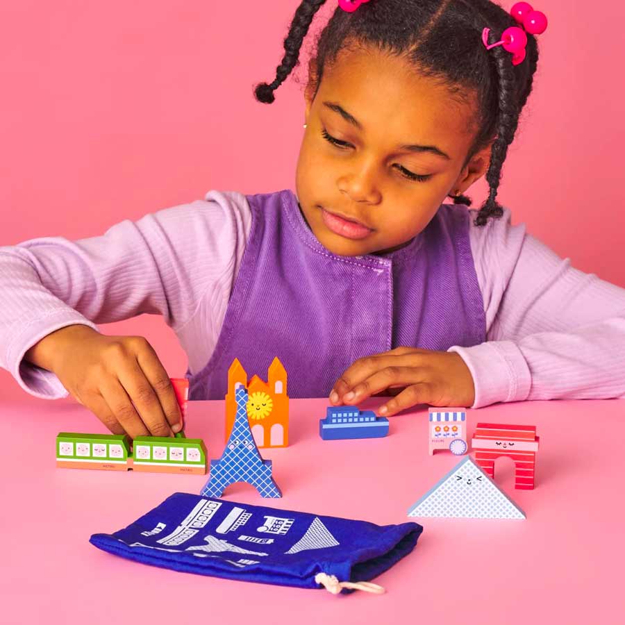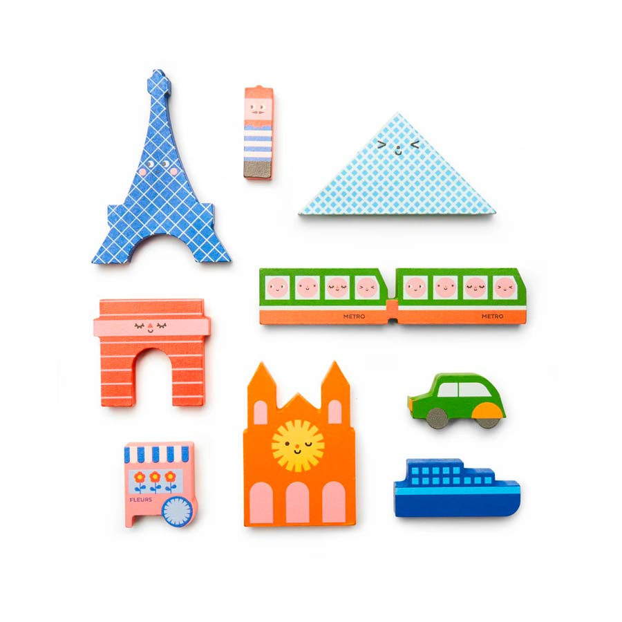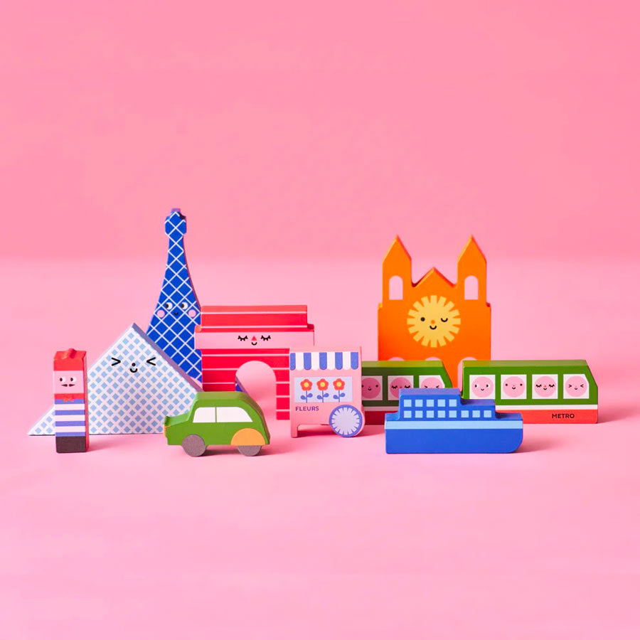 Découvrez ce jeu en bois de chez Kikkerland, la ville de Paris en miniature pour les petits explorateurs ! Contenant 9 pièces en bois FSC, on y retrouve des monuments emblématiques comme la Tour Eiffel, la pyramide du Louvre, Notre-Dame et l'Arc de Triomphe. Votre enfant pourra construire sa propre capitale.