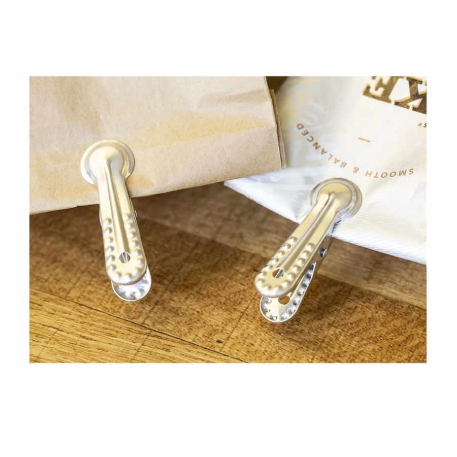 Ces jolies petites pinces en aluminium sont très pratique pour refermer vos sachets d'épiceries dans votre cuisine. Mais aussi pour regrouper vos documents dans votre bureau ou fixées au mur pour créer un système d'accrochage original.