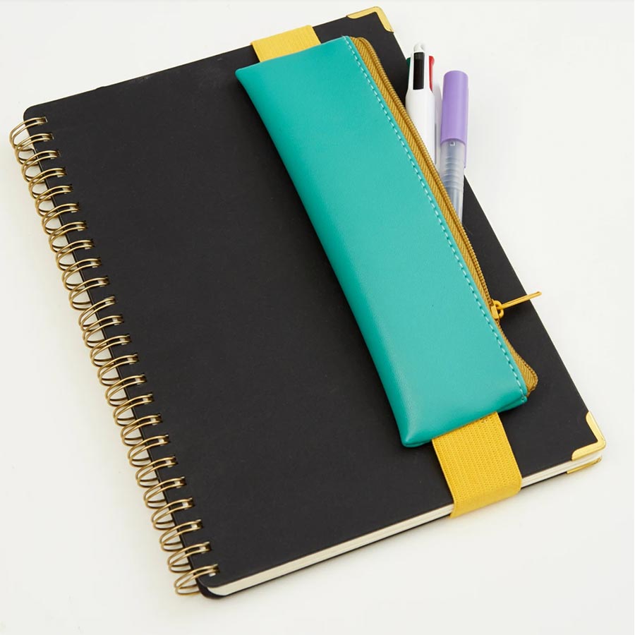 La trousse couleur verte à élastique pour carnet de la marque Kikkerland. La petite trousse à élastique s'adapte parfaitement à tous vos carnets. Cette pochette ultra fine apporte une touche de couleur à vos couvertures de carnets. Elle est idéale pour ranger vos stylos, crayons et gomme. Sa bande élastique fonctionnelle s'enroule sur la couverture de votre carnet, agenda ou cahier. L'élastique peux également vous servir comme un marque-page. La trousse se ferme par une fermeture éclair colorée.