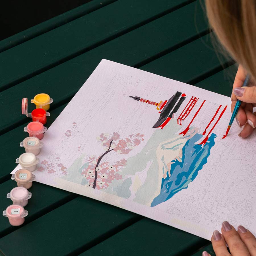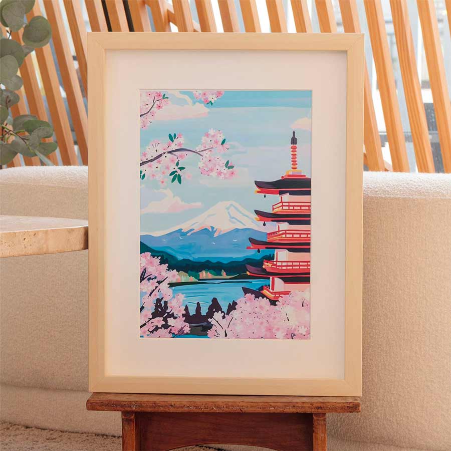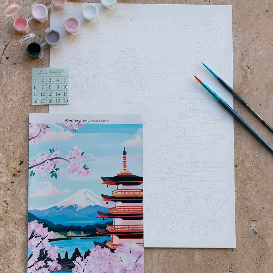 Le kit de peinture au numéro Mont Fuji est une invitation à l’évasion. Imaginé par La Petite Épicerie, il met en scène l’un des plus beaux panoramas du Japon : le célèbre Mont Fuji, des cerisiers en fleurs et une pagode iconique. Ce tableau poétique allie douceur des couleurs et détails minutieux, pour un moment de création apaisant et contemplatif.