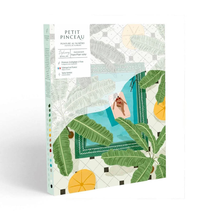 Le kit de peinture au numéro Daydreaming est né de la collaboration entre l'illustratrice Nora Dong et la petite épicerie. Ce set de peinture à faire soi-même est composé d'une illustration numérotée, de pots de peintures et de deux pinceaux.