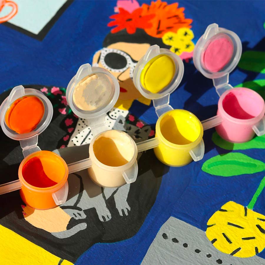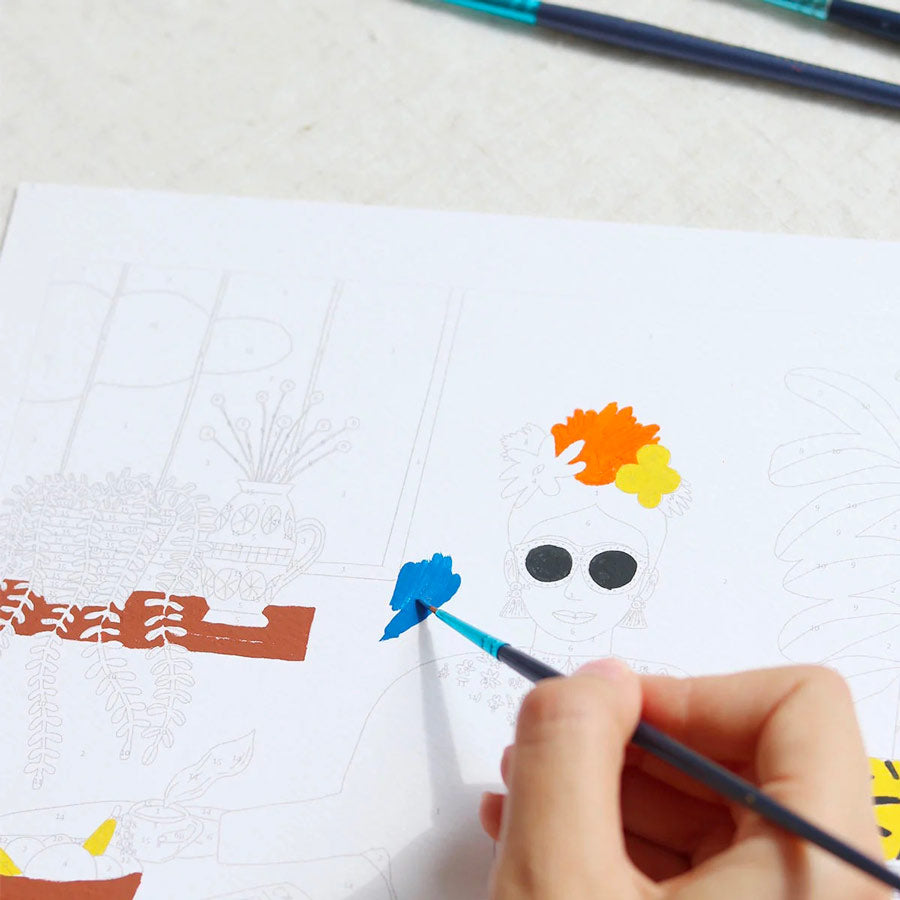 Le kit de peinture au numéro La fille aux chats est né de la collaboration entre l'illustrateur Guillaume Denaudhome et la petite épicerie. Ce set de peinture à faire soi-même est composé d'une illustration numérotée, de pots de peintures et de deux pinceaux.