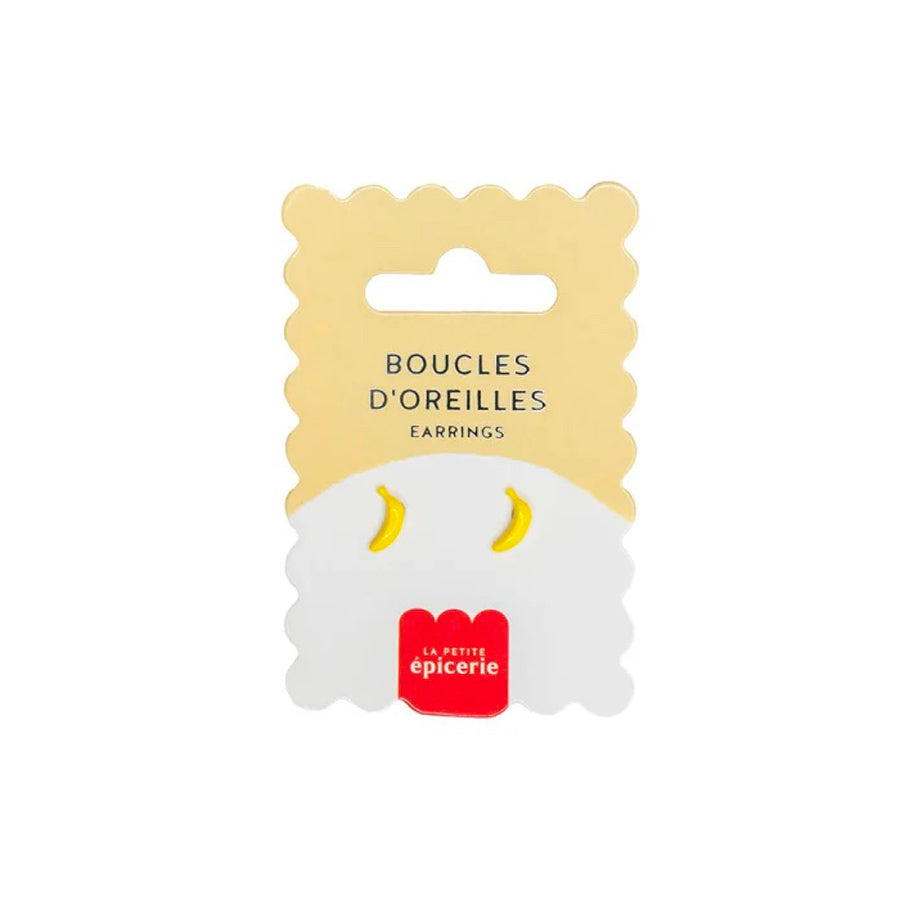 Découvrez les boucles d'oreilles puces en forme de banane de La Petite Epicerie. Fabriquées en porcelaine, celles-ci sont si légères que vous oublierez même que vous les portez. Montées sur des attaches en acier inoxydable, elles conviennent aux peaux sensibles.