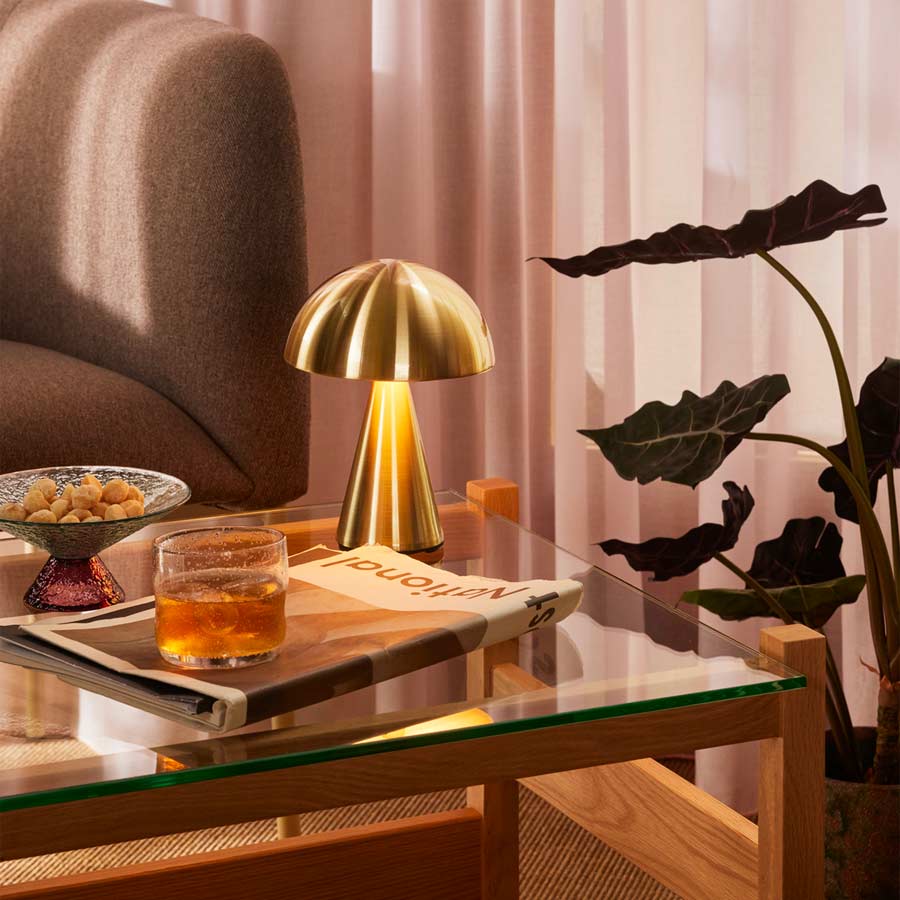Craquez pour la lampe portative Mush doré de chez Hubsch ! Avec son design adorable en forme de champignon, elle séduit par sa simplicité et sa finition en laiton qui lui donne un style vintage.