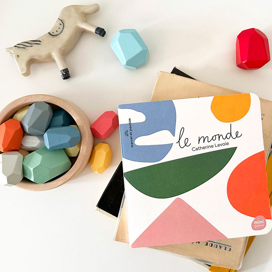 Le joli imagier Le Monde aux formes minimalistes et aux couleurs vives, pour nourrir le regard du tout-petit et de son parent. Une vision du monde gaie et créative, par l'illustratrice québécoise Catherine Lavoie.