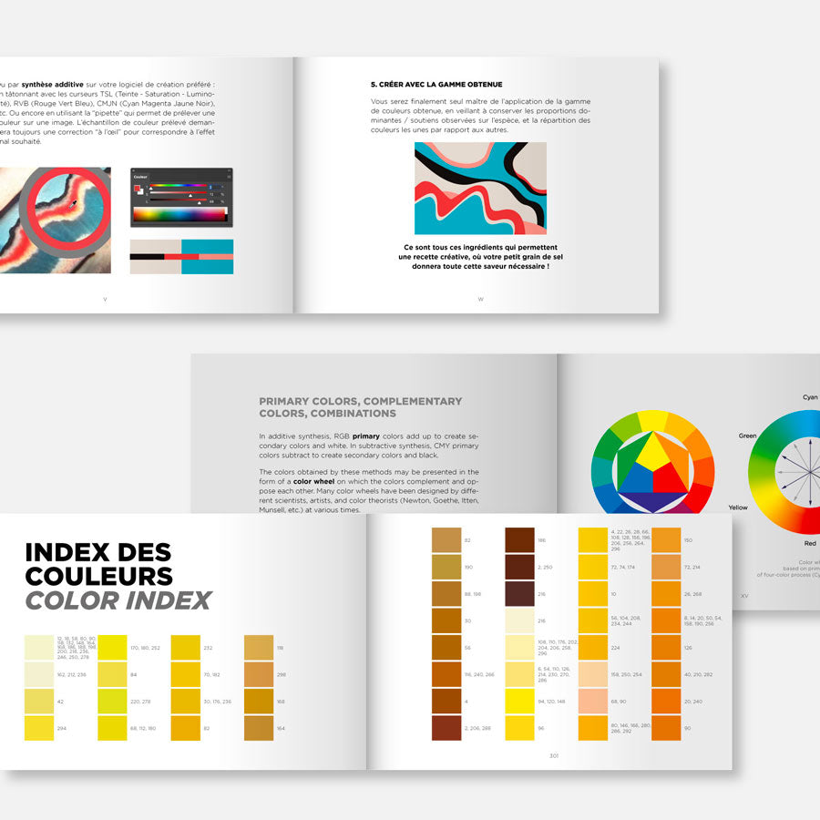 Le livre Color Inspiration volume 2 de chez Papier Tigre. Ce nuancier propose 450 combinaisons de couleurs inspirées par 150 lieux autour du monde. Dans ce petit ouvrage, on retrouve également :
