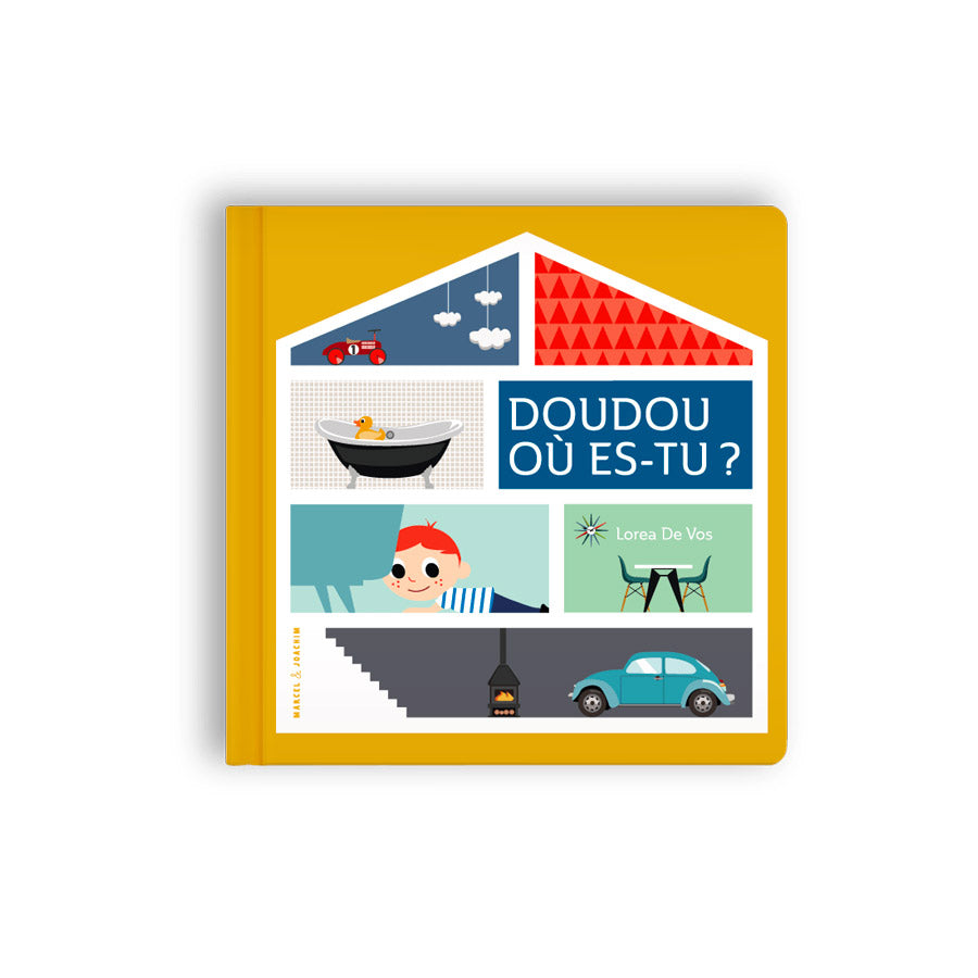 Le livre Doudou où es-tu ? Imaginée par l'architecte Lorea De Vos, écrit en collaboration avec une professeur des écoles maternelles et édité par Marcel et Joachim, maison d'édition indépendante pour la jeunesse. Un livre cartonné très ingénieux pour partir à la recherche de Doudou dans la maison !