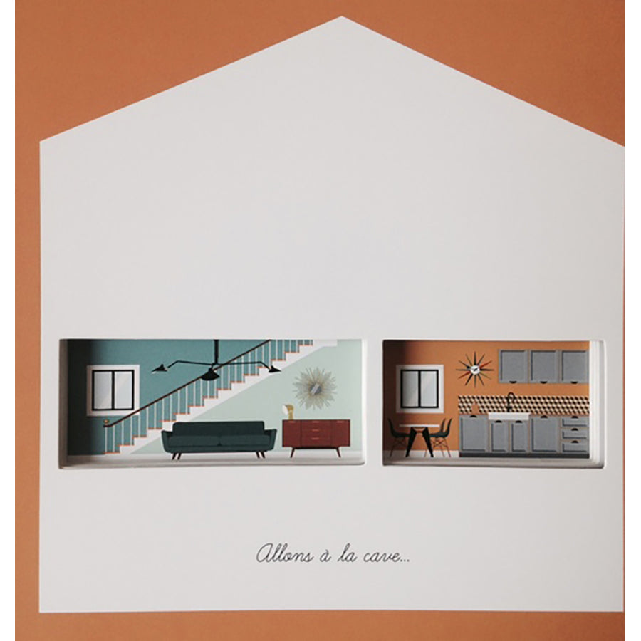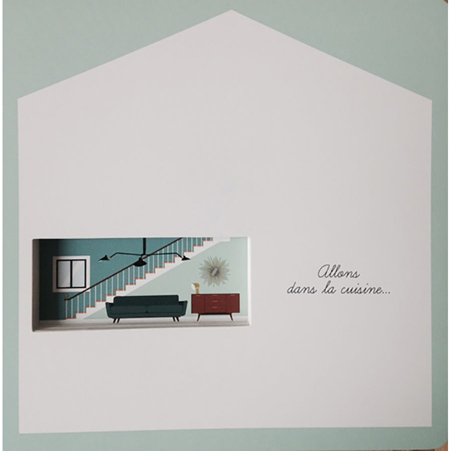 - En page de droite, une multitude de détails à observer dans la maison, en page de gauche une illustration plus simple où l’on voit le petit héros en situation.
