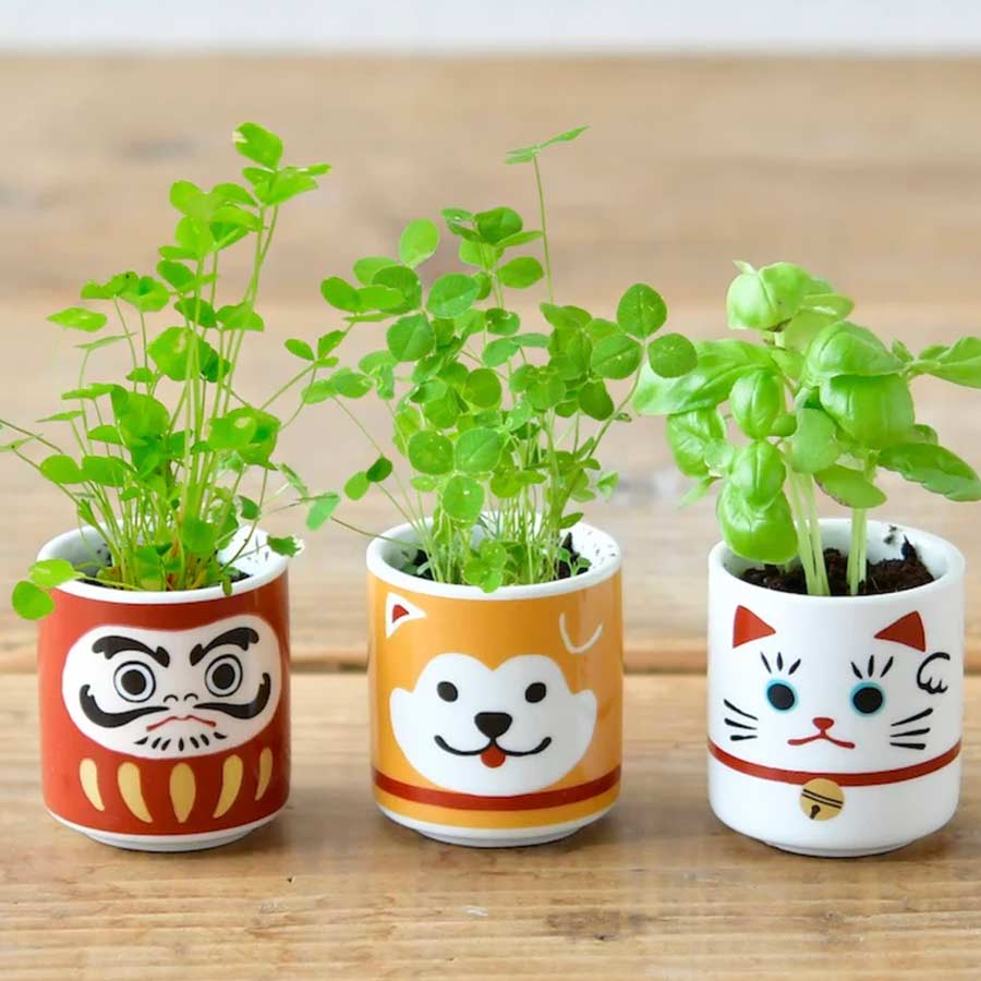 Ces Lucky Plants sont des kits de culture adorables et porte-bonheur inspirés des traditions japonaises. Chaque kit comprend un petit pot en céramique décoré d'un motif et contient tout ce qu'il faut pour cultiver vos plantes chanceuses.